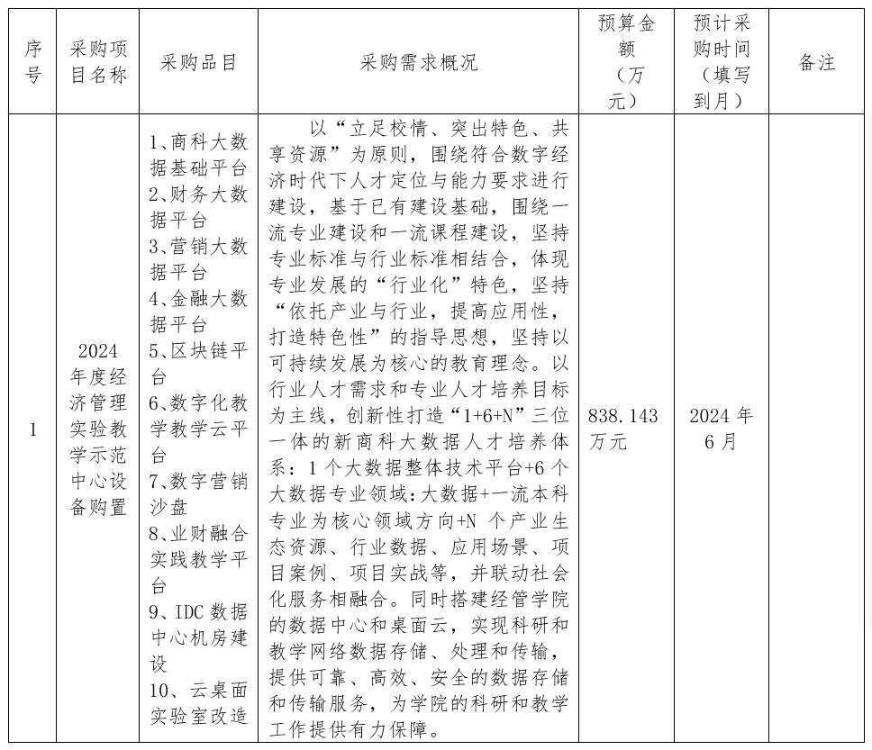 经济管理实验中心采购意向公告