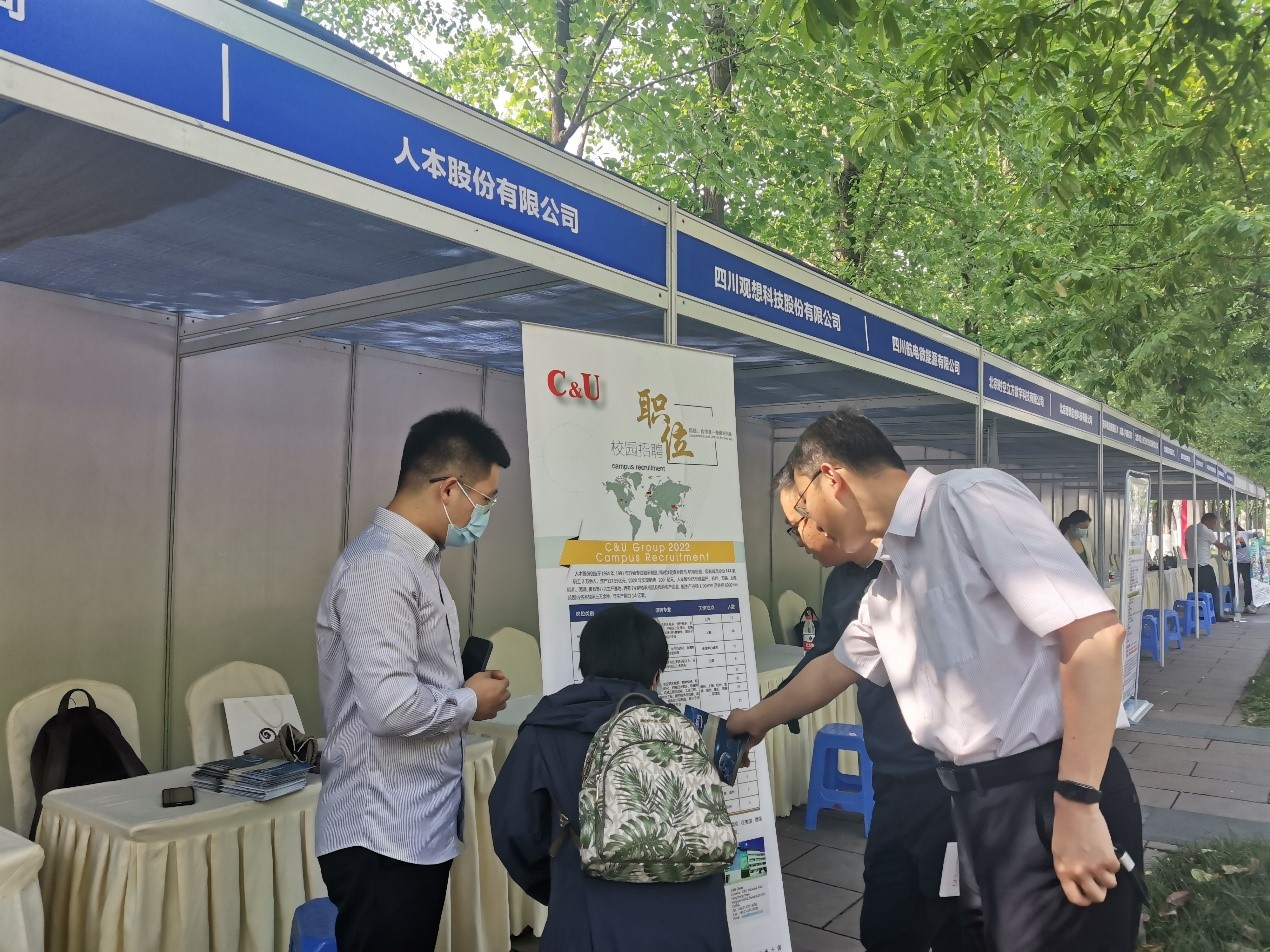2022年5月9-11日,西南交通大学2022届毕业生暨2023届实习生春季系列“双选会”(第三场)在犀浦校区北区篮球场外侧举行,现场共43家企业到场招聘我校2022届毕业生和2023届实习生。5月10日上午,经济管理学院党委书记王斌、执行院长郭强和学院毕业生就业工作专项负责人王哿和研究生辅导员任永昌到“双选会”现场推荐毕业生和实习生。