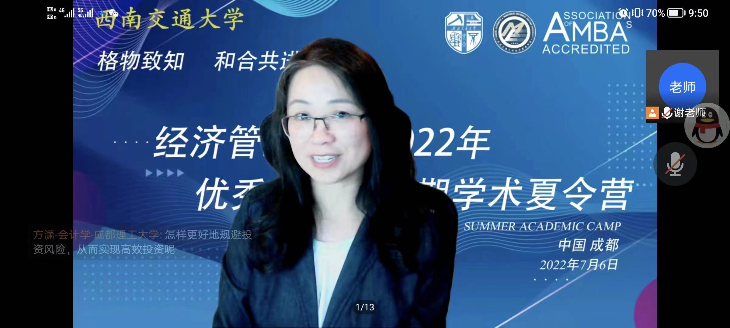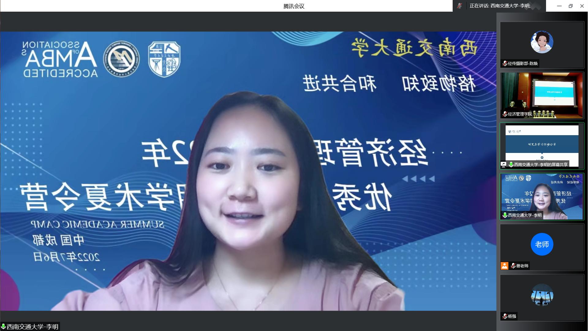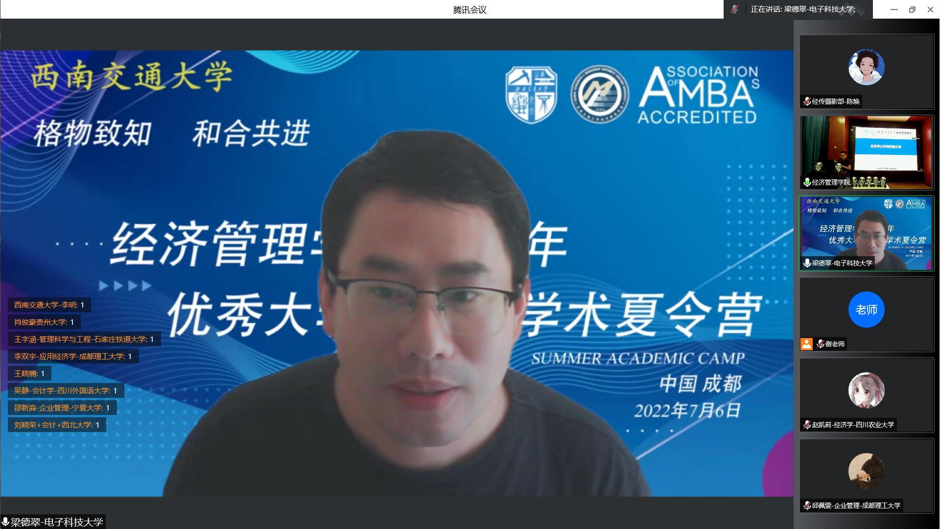 7月6日,西南交通大学经济管理学院2022年优秀大学生暑期学术夏令营活动在线上成功举办。