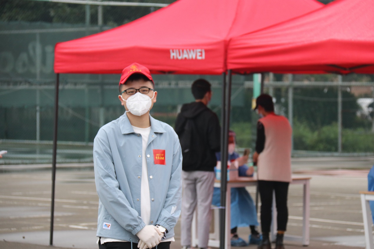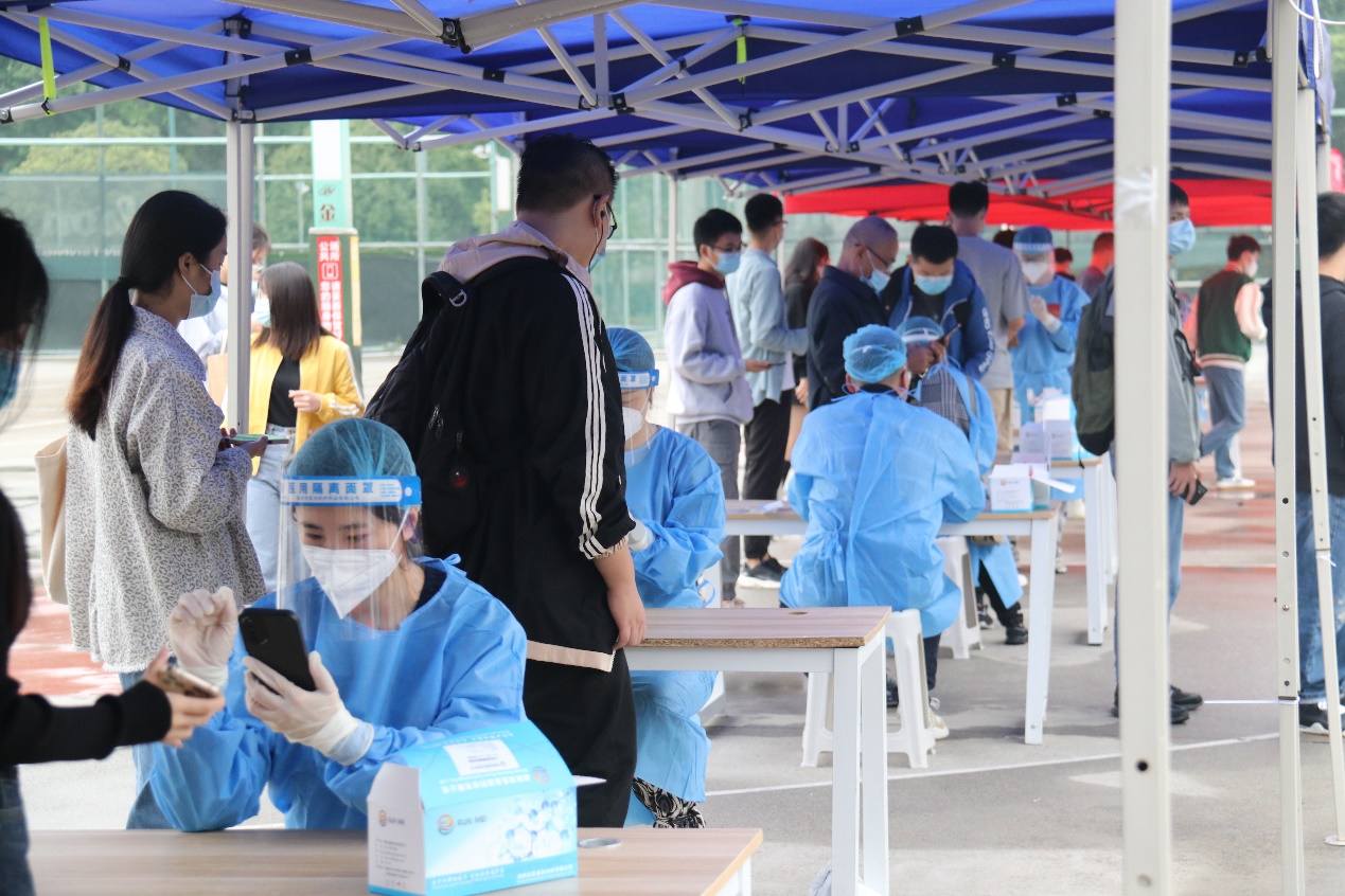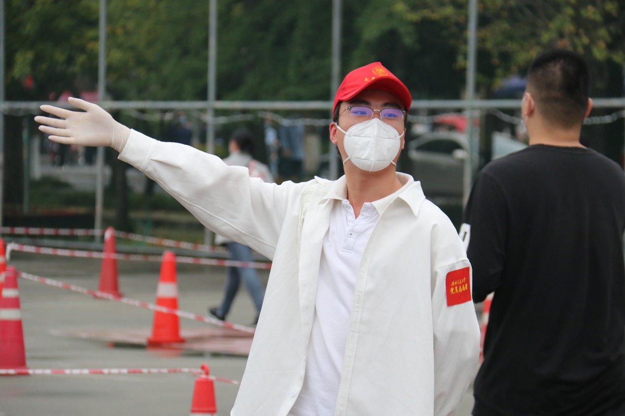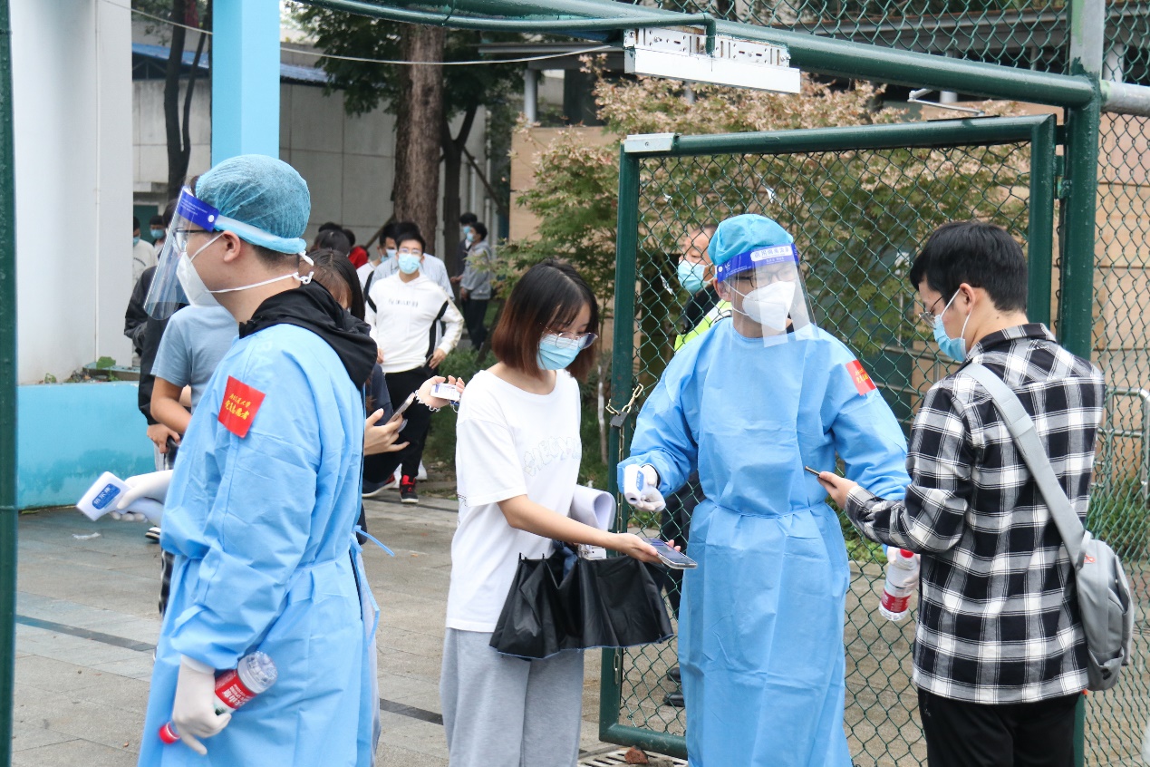9月26日,雨后的九里校区,一群身穿蓝色防护服的经管志愿者老师、头戴小红帽的经管志愿者同学出现在了核酸检测的现场,给微凉的初秋增添了几分暖意。