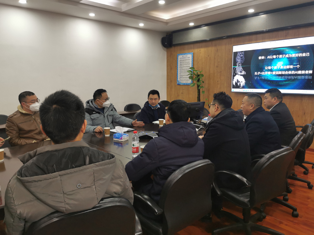 上海乂学教育科技有限公司CEO周伟就该公司在人工智能领域硬件的研发以及取得的科研成果进行详细的介绍,副总经理谢泽就人才培养、科研创新、大学生就业等领域与我院开展合作提出了需求。创业学院院长张华就设立大学生创业创新基金,推动高校毕业生高质量创业就业,以创新引领创业、创业带动就业做了一个介绍。