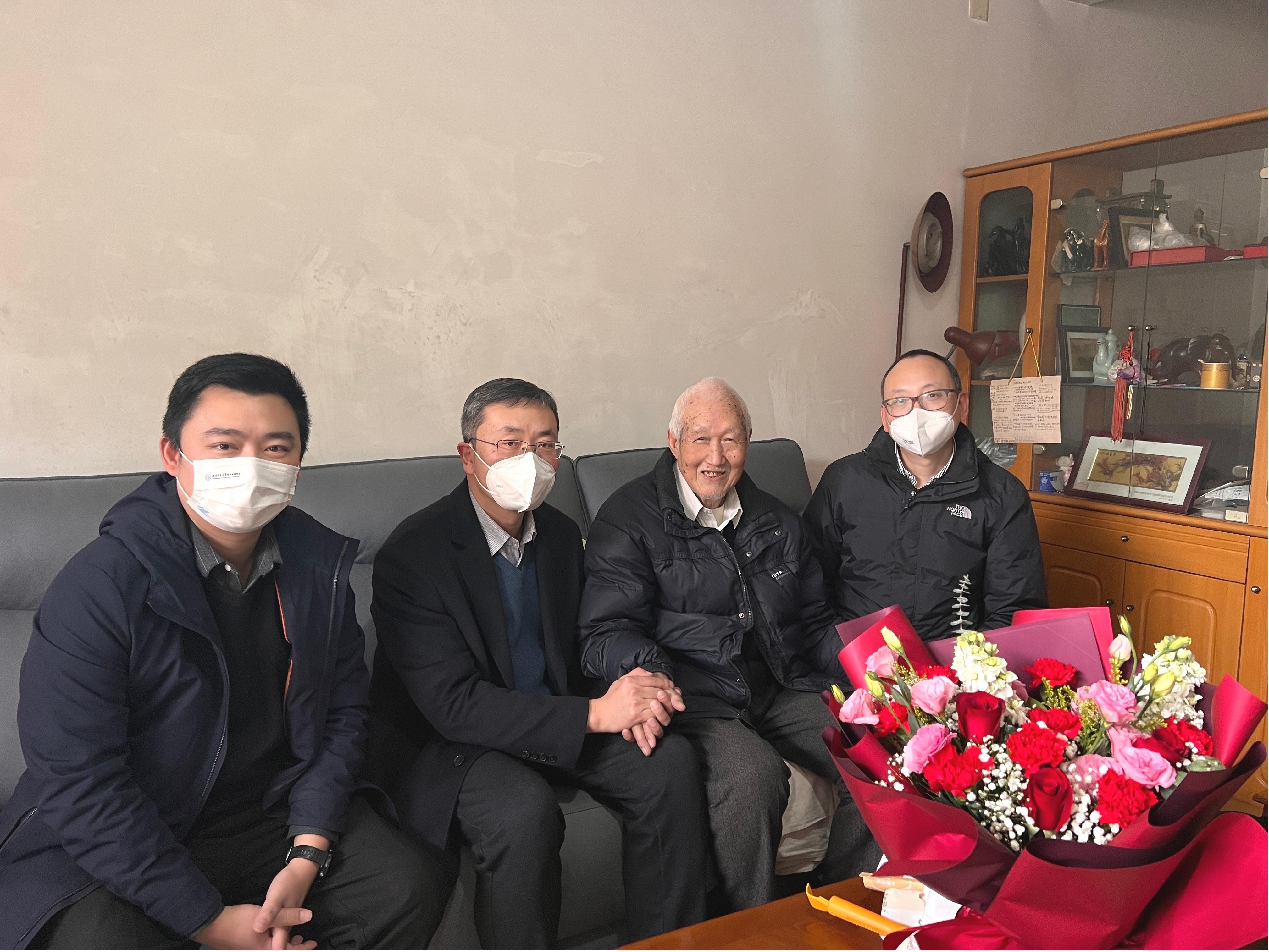 学院党委书记王斌、执行院长郭强、党委副书记晏理斌等一行来到曹琦教授的家中,详细询问了曹老师的身体情况和生活现状,与他促膝而谈,并对老教授多年来为学院事业发展的付出表示感谢,祝愿老教授们在新的一年身体健康、阖家幸福。