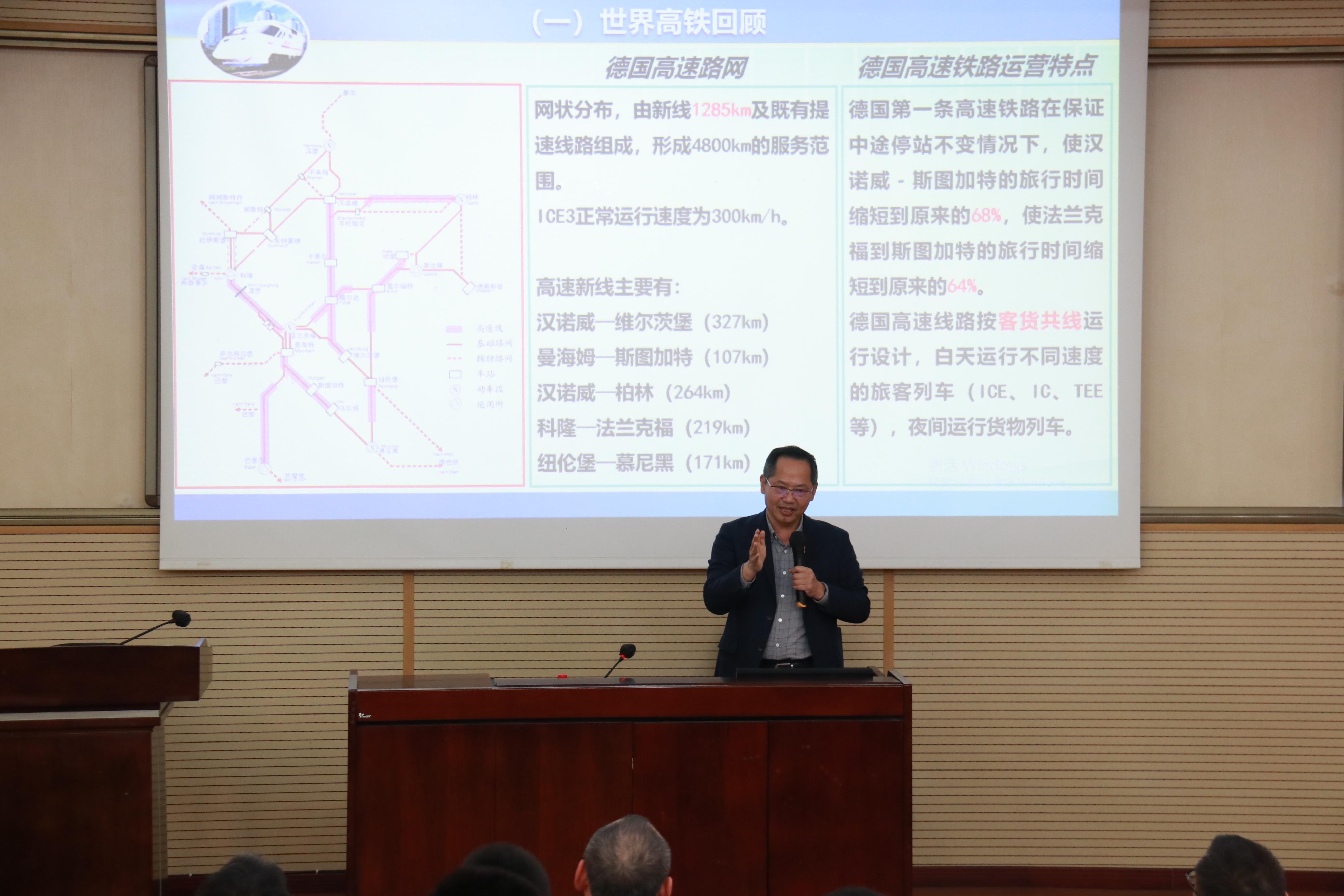 接着,周国华教授为同学们开展了题为《高铁过去、现在与未来》的专题讲座。周教授谈道,中国高铁已经成为了我们国家一张全新而亮丽的名片,集中展示中国速度、中国智慧、中国力量,让全世界看到了中国高铁所代表的“中国速度”的成功与自信,发展与未来。西南交通大学作为研究高铁技术的重要科研力量和人才培养摇篮,为中国高铁发展做出了重要贡献。最后,周教授寄语同学们认真学习,积极投身交通强国铁路先行的研究创新事业中去。