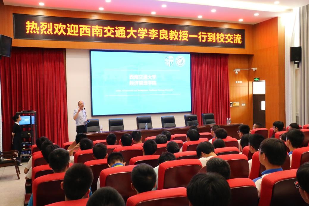 李良教授首先代表西南交通大学对江油外国语学校热情周到的接待表达了诚挚感谢,随后详细地介绍了西南交通大学发展历史、经济管理学院专业分类及招生就业等情况,最后表达了对在座同学能顺利考上心仪大学的殷切祝福。