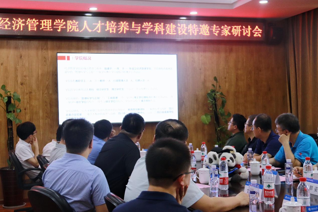 首先,郭强执行院长从学院概况和学院特色发展的思考与规划两个方面向各位专家介绍了学院的基本情况。副院长聂佳佳、副院长周嘉南和副院长李良就目前学院的发展现状,分别提出有关人才引进、教学改革经验以及重大项目发展这三大问题向专家提出咨询。