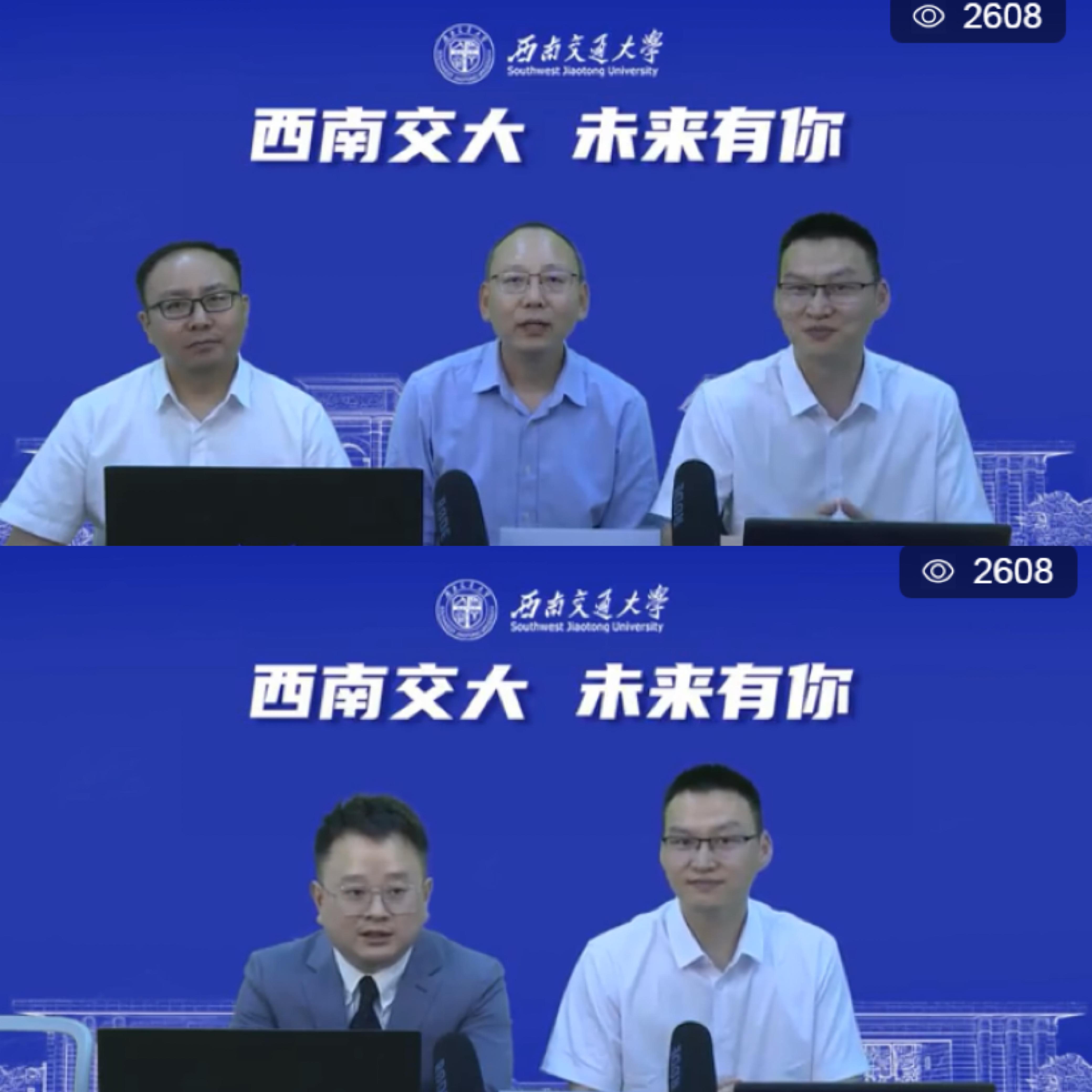 执行院长郭强教授就学院整体情况、师资力量、本科各专业情况、招生及就业情况等作了详细的介绍。随后,杨宏毅副书记、李良副院长、陈建奇老师针对直播期间学生及家长关心的免研、转专业、实习、实践、课外活动、竞赛、生活环境等问题进行了解答。最后,老师们对关注本场直播的全国考生表达了祝福,欢迎他们积极报考西南交通大学经济管理学院。