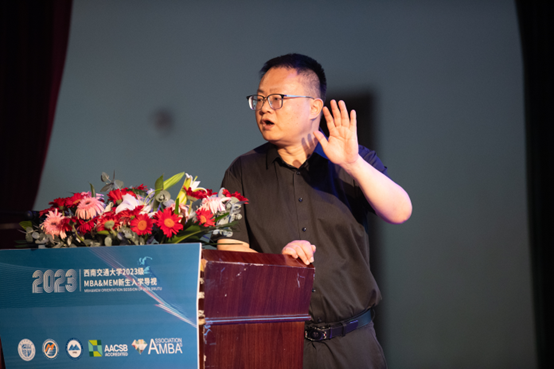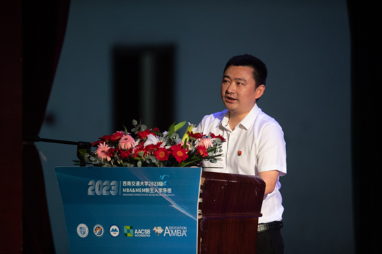 第25届MBA联合会主席张永恒代表主席团发言,分享了对MBA联合会的认识以及未来发展规划,他表示西南交通大学MBA联合会继续坚持以文化传承、智慧赋能、链接共生为宗旨,秉承拓宽横向交流平台的对内服务、持续增强交大MBA影响力及对外发声的职能,打造属于西南交大MBAer共同成长的平台。