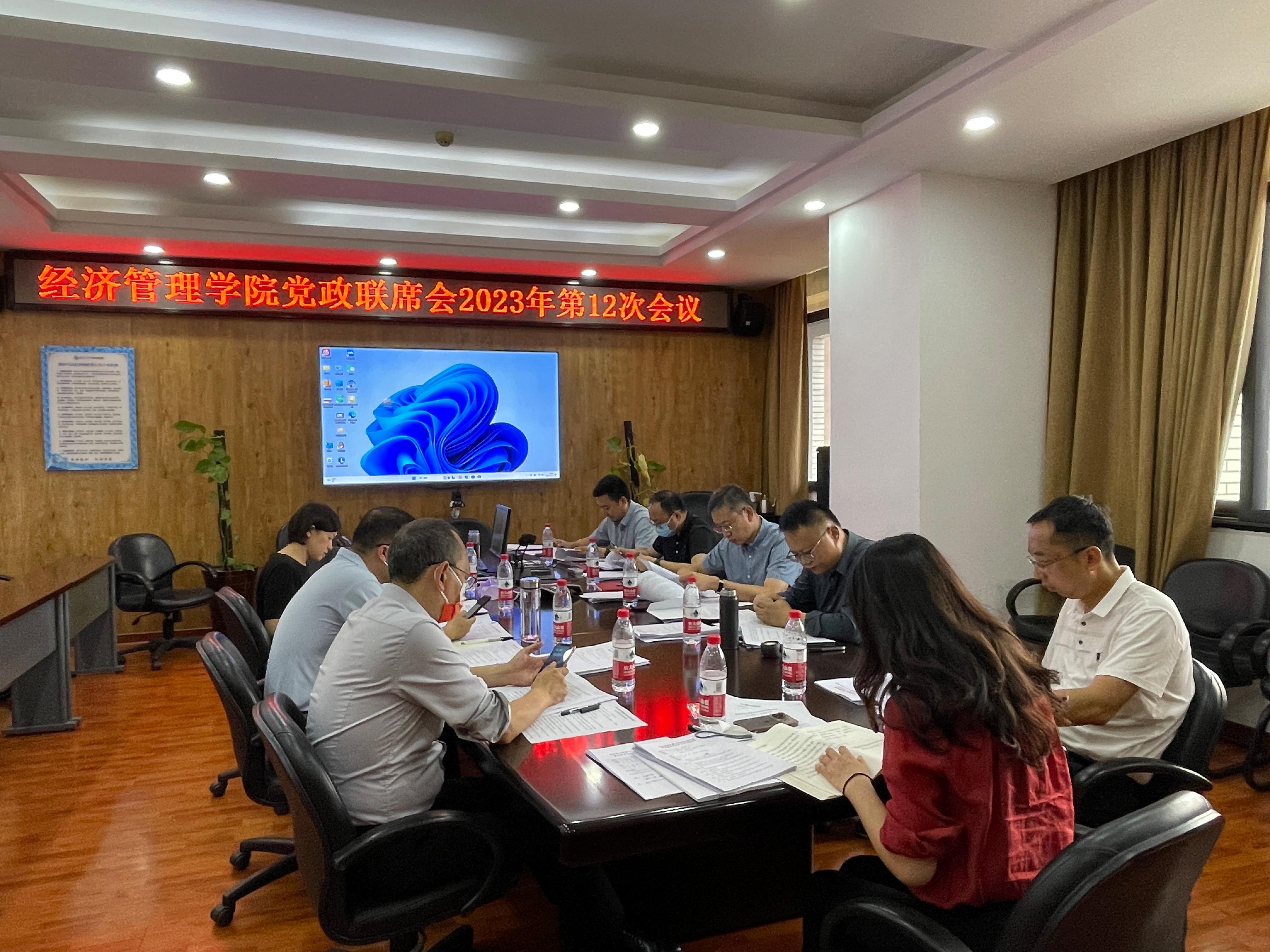 学院2023年第12次党政联席会议于9月15日上午10:20召开,会议按照议题分别由学院党委书记王斌、执行院长郭强主持。