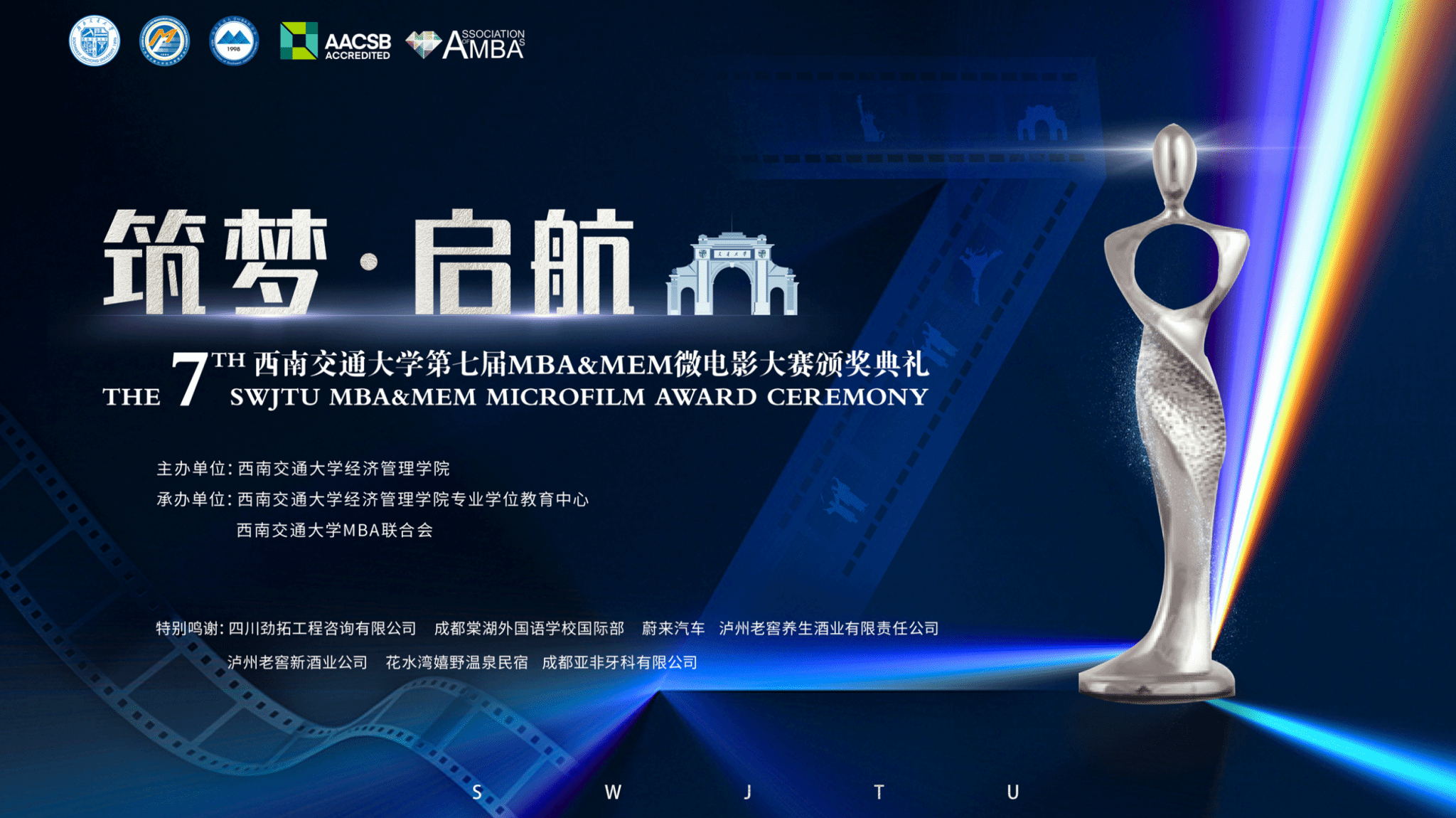 2023年11月25日19:00西南交通大学第七届MBA&MEM微电影大赛颁奖典礼在西南交通大学九里校区(5号教学楼)国际会议厅举行。