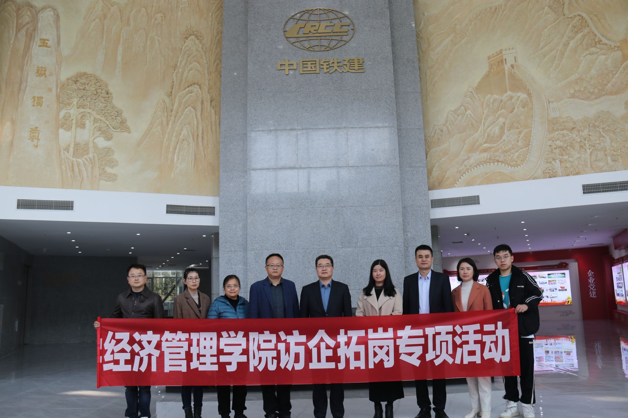 中铁二十三局对经济管理学院一行人员进行热情接待,并带领参观集团展厅,就集团发展历程、人才培养、创新文化、荣誉成就、高质量发展等内容做详细讲解。