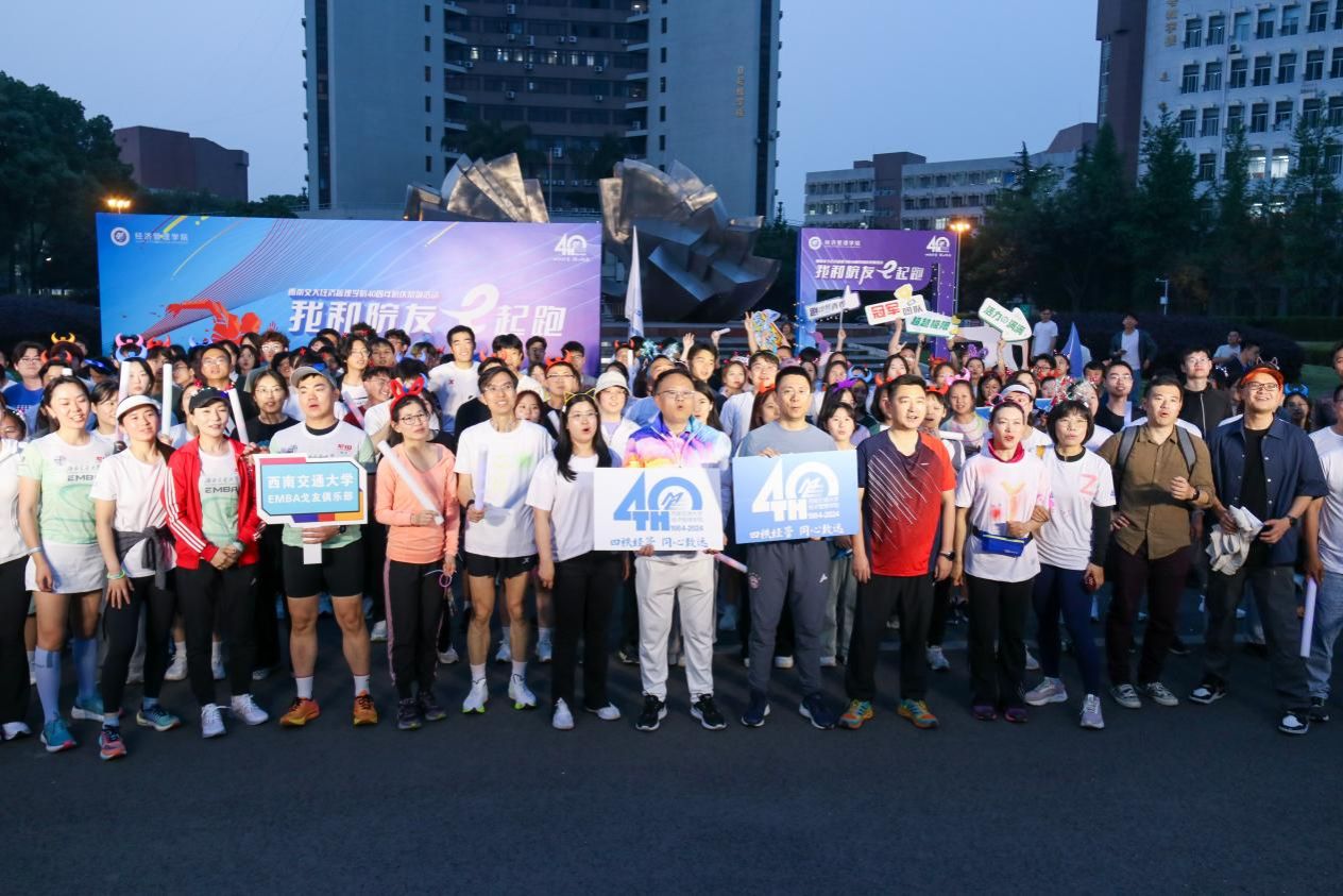 2024年4月13日周六晚19时,时值经济管理学院建院四十周年之际,一场旨在增进院友与母校纽带、强化院友互动、提升团队协作精神的“我和院友‘e’起跑——荧光夜跑”活动在九里校区内热烈展开。学院党委书记郭强、院长韩科、党委副书记余小英、党委副书记、纪委书记晏理斌、团委书记贾佳、综合事务办公室副主任张笑芸出席了本次活动,学院100余名院友、师生参与其中。