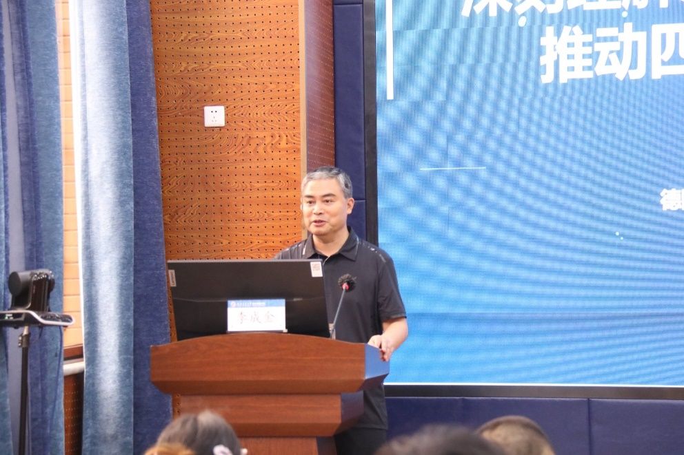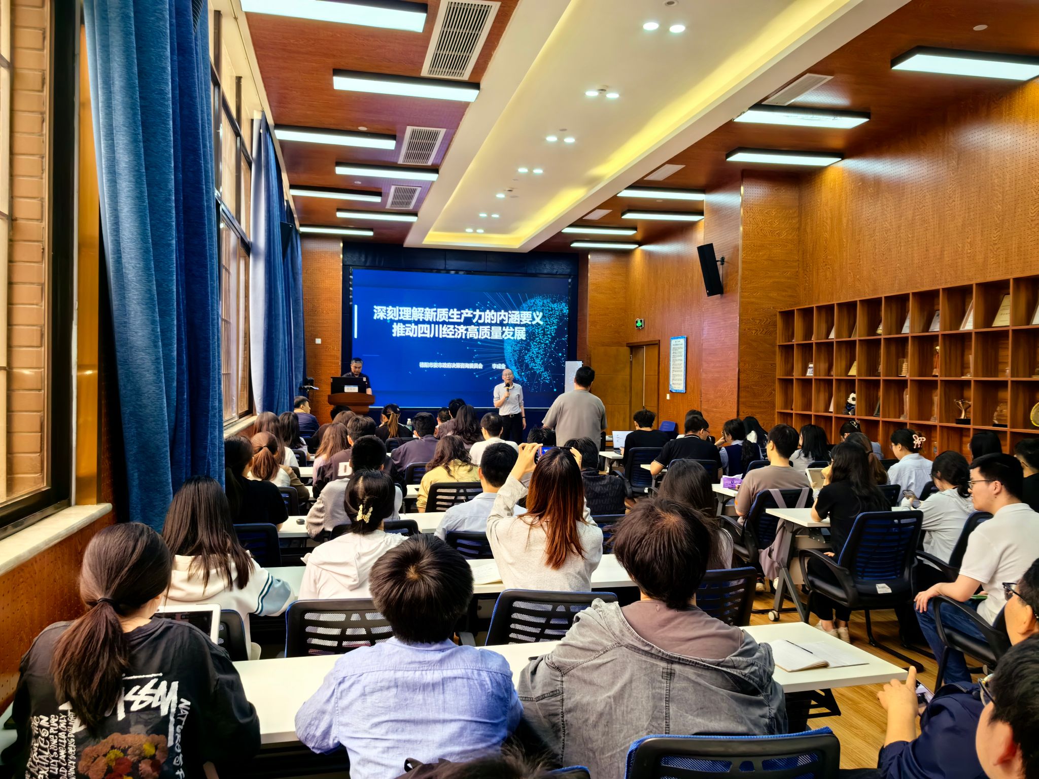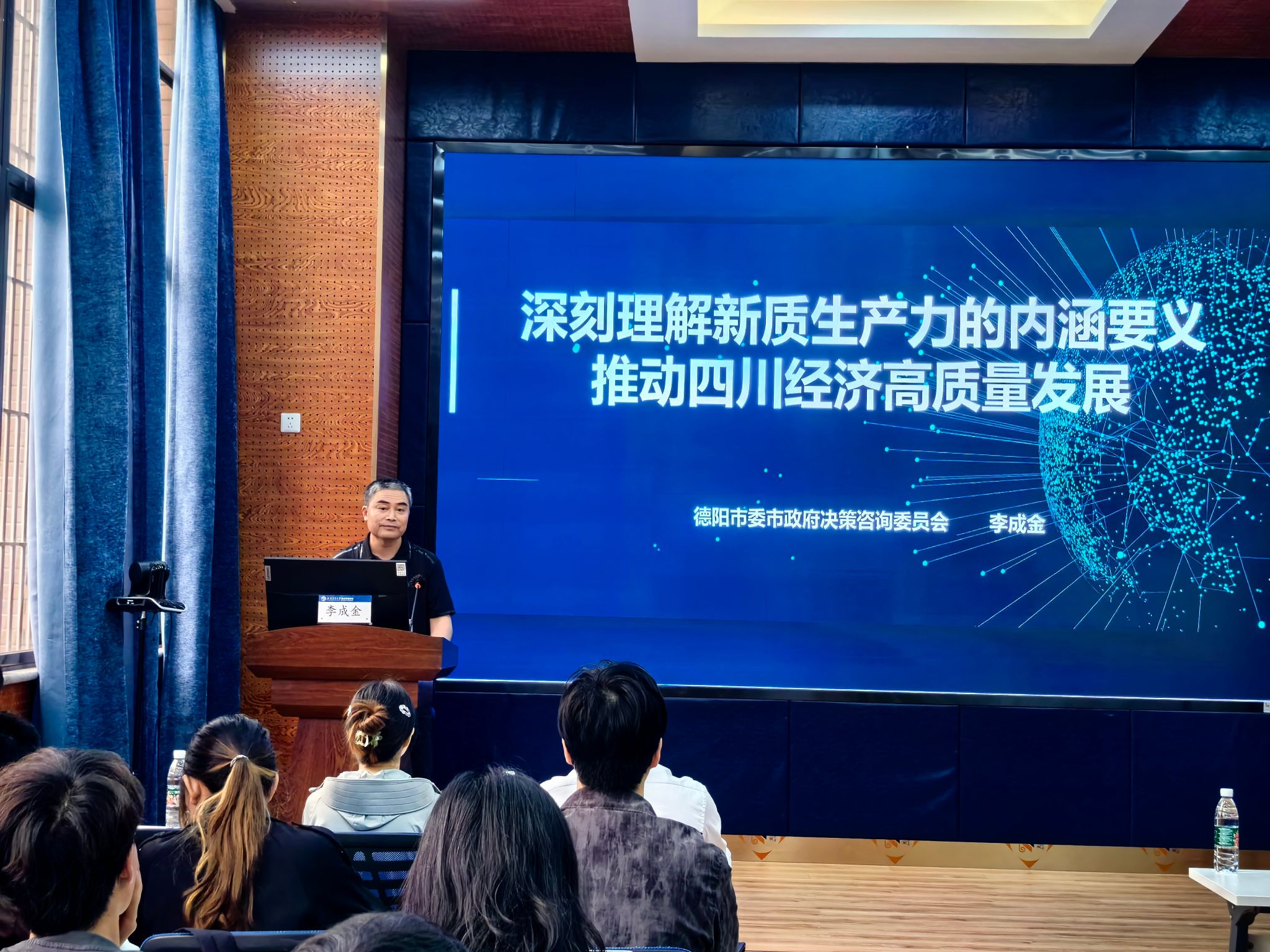 2024年5月10日下午,我院兼职教授李成金为经济管理学院师生带来关于“深刻理解新质生产力的内涵要义,推动四川经济高质量发展”的讲座。本次讲座由经济管理学院副院长李良主持,学院党委书记郭强、综合办公室主任何鹏及学院师生参加了此次活动。