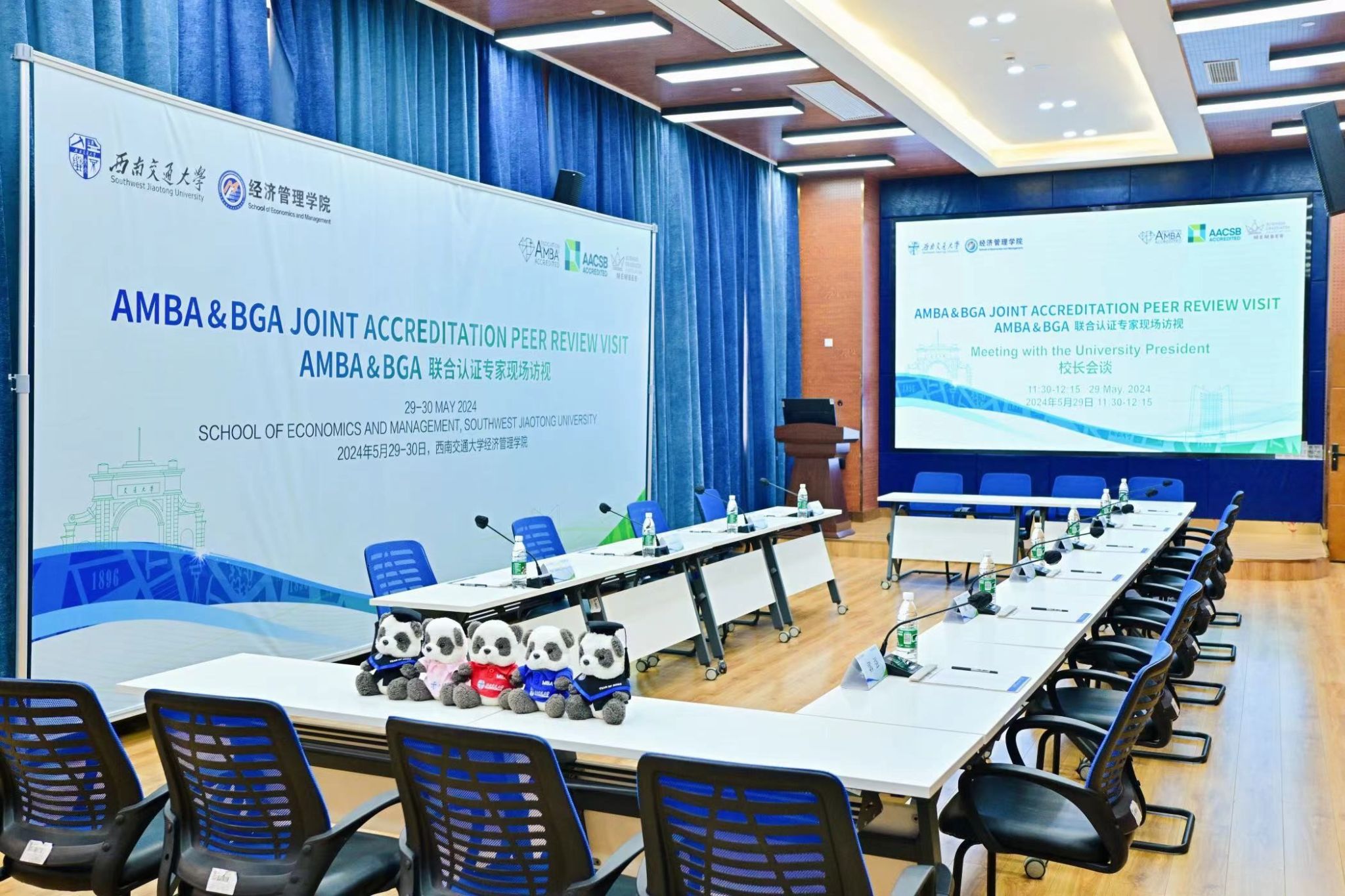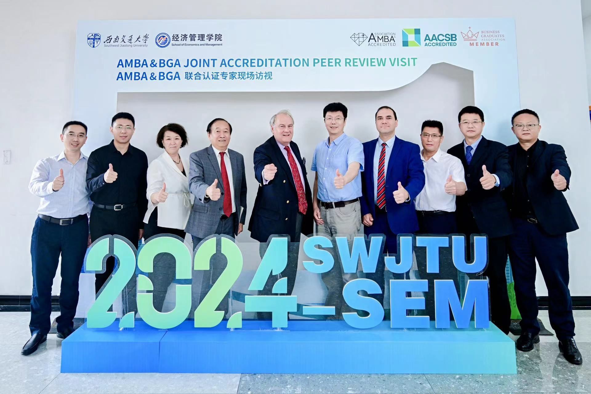 2024年5月29-30日,西南交通大学经济管理学院AMBA&BGA联合认证专家现场访视在九里校区举行。西南交通大学校长、党委副书记闫学东,研究生院、教务处、国际交流与合作处相关负责同志,经济管理学院领导班子成员、部分学位项目负责人、系主任、部门负责人、以及教师、学生、校友、雇主代表与评审专家组进行了会谈。