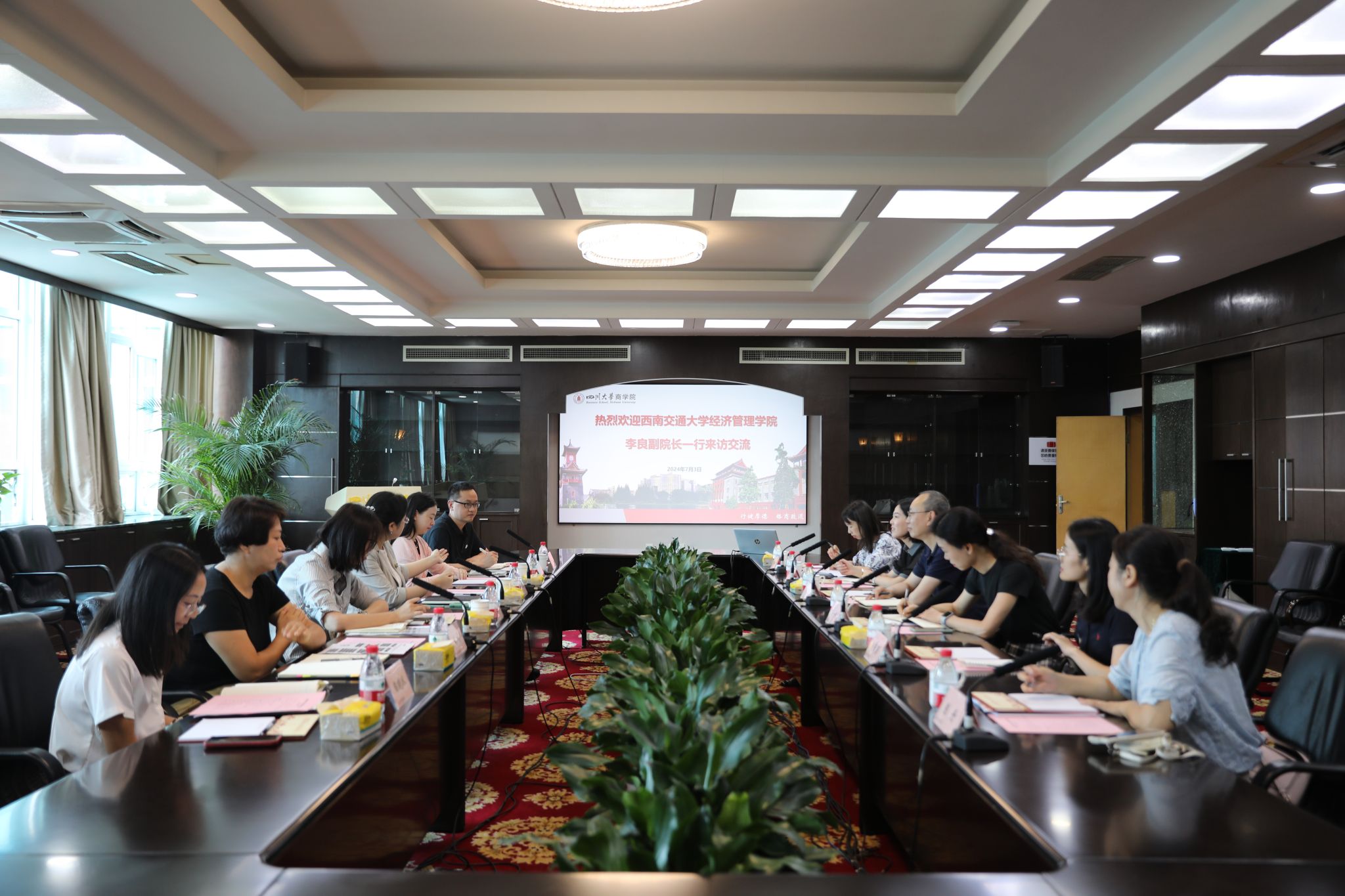 为贯彻落实学院国际化战略,持续推进国际认证、国际交流与合作相关工作开展,7月3日上午,经济管理学院副院长李良带队,携国际认证中心主任王一帆、副主任范婷、认证专员杨潇潇、张琼、综合事务办公室外事秘书陈丹一行6人前往四川大学商学院开展调研交流。四川大学商学院副书记刘莉莉、党政办主任唐建民、认证与质量提升办公室副主任钱晓烨及认证主管吴昊、陶晓冰、国际交流与合作办公室主任陈睿出席了本次交流会。