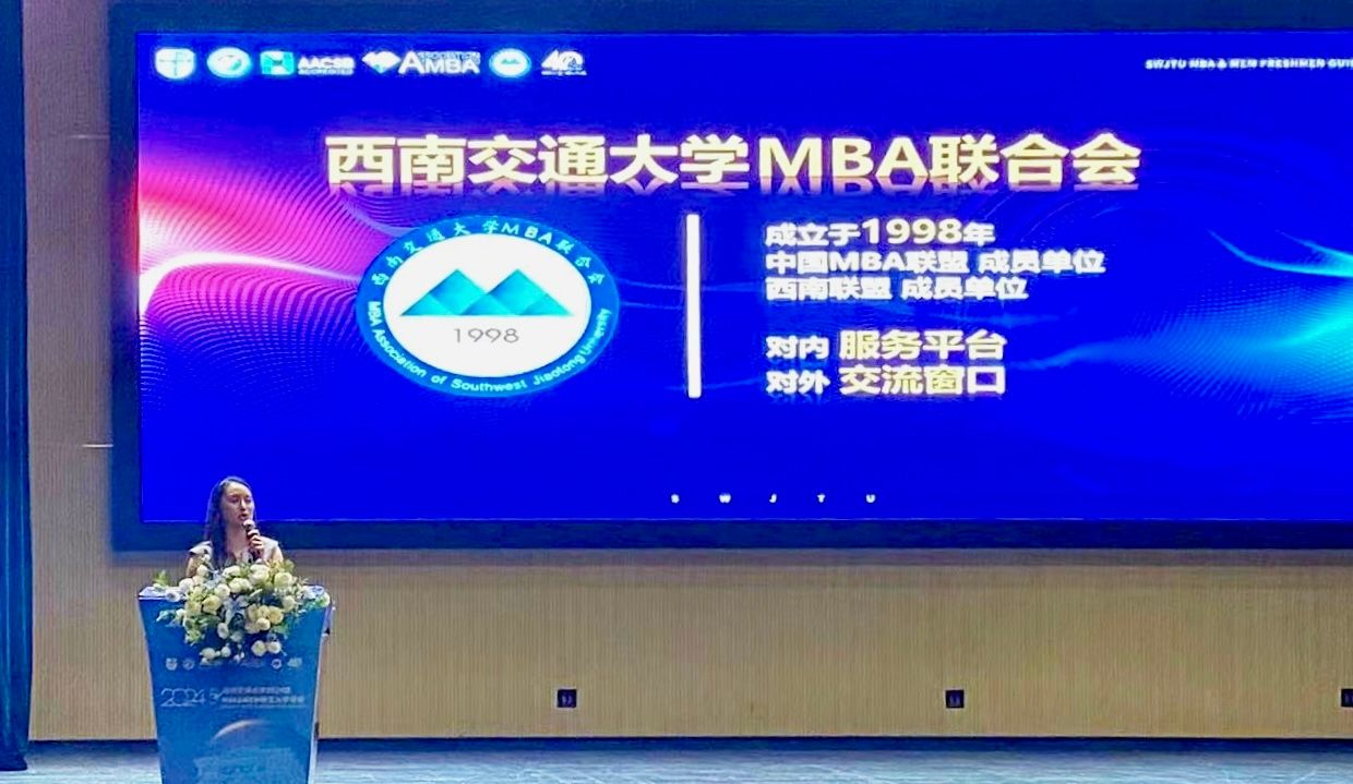 第26届MBA联合会主席陈文莉代表主席团发言,并分享了对MBA联合会的认识以及未来发展规划,她表示西南交通大学MBA联合会将继续坚持以文化传承、智慧赋能、链接共生的核心理念,秉承拓宽横向交流平台的对内服务和持续增强交大MBA影响力的对外发声职能,打造属于西南交大MBA人共同成长的平台。