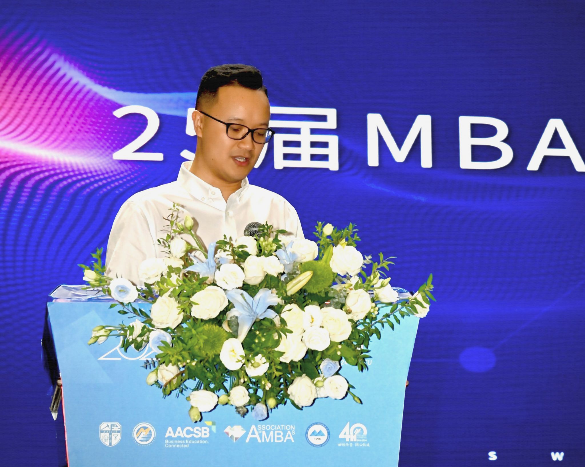 经济管理学院院长韩科致欢迎辞,韩科代表学院全体师生对2024级MBA&MEM新生表示热烈的欢迎。希望同学们在学院的学习生活中,能够充分将个人发展与国家战略、时代需求紧密结合,通过跨学科的学习与研究,深入洞察行业需求,将管理智慧与现代信息技术深度融合,以实际行动助力新质生产力的发展。鼓励大家勇于探索,敢于创新,以扎实的专业知识、卓越的实践能力和世界情怀开阔眼界、扩展思路,主动对接共建“一带一路”,实现高等教育与新质生产力发展双向奔赴。