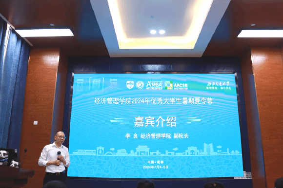 西南交通大学研究生院常务副院长艾长发在开幕辞中回顾了学校自1896年创建以来的发展历程,强调其作为中国工程教育高等学府的重要地位,及在“双一流”建设项目中的突出表现。他特别提到经济管理学院获得了多项国际认证并在学术和创新竞赛中取得了优异成绩。艾长发院长寄语营员们坚持初心、勇于担当,并祝愿此次活动圆满成功。
