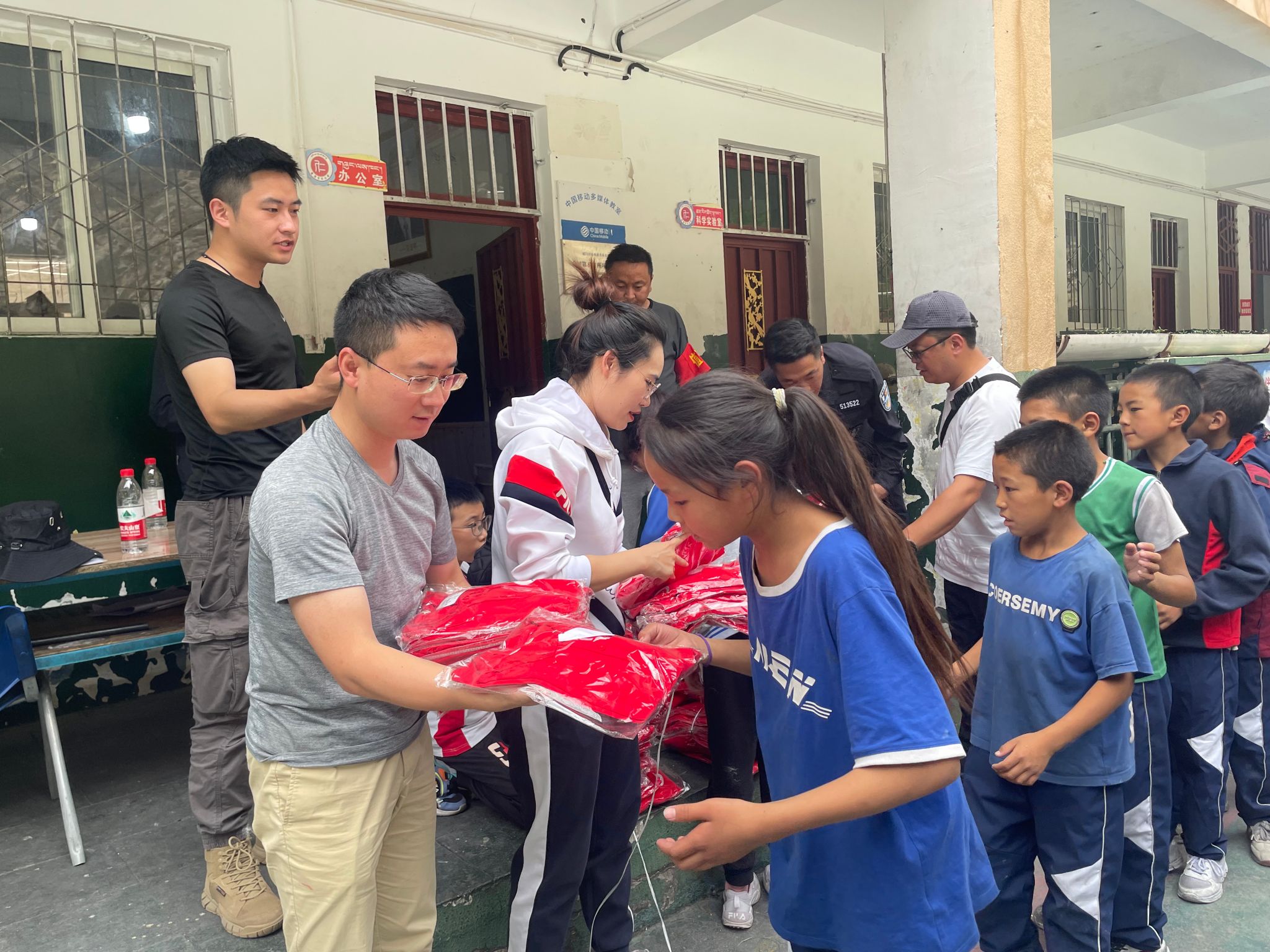 7月5日上午,志愿者们驱车前往离巴塘县城100多公里外的昌波乡中心校、地巫镇中心绒九年义务学校,将爱心送到了孩子们的手中,学校领导表达了对志愿者的欢迎、感谢与祝福。志愿者们为324位藏区孩子分别送去了定制的长袖T恤和校服,并前往中咱乡中心校和巴塘中学为4名长期受资助读书的小学六年级、初中二、三年级的学生送去了本期资助款,带去了来自西南交通大学经济管理学院莘莘学子的关心和问候。