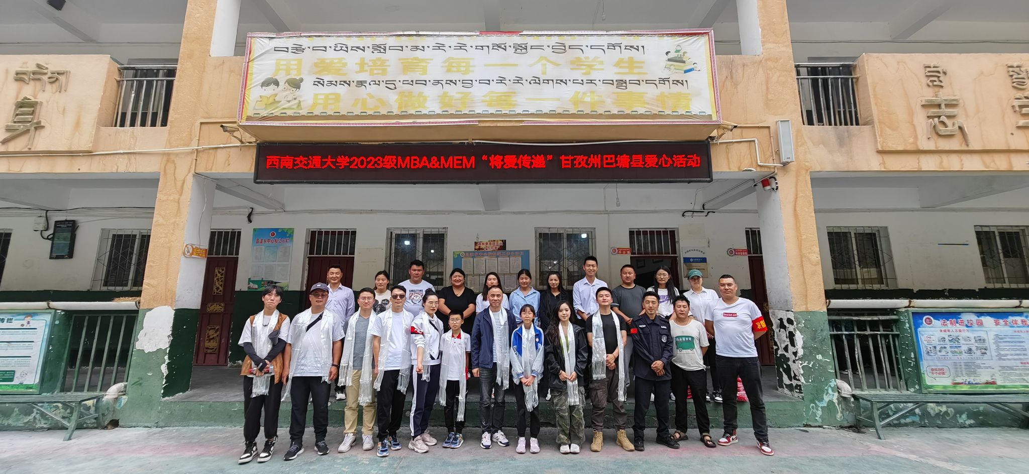 巴塘县,位于四川省西部青藏高原东南缘,四川G318国道最后一站,虽处交通要道,但人均可支配收入水平却远低于全国平均水平,许多居民生活条件十分艰苦。据了解,巴塘县部分学生在小学六年时间只有一套校服可以进行穿着,为了改善当地学生的生活状况,提高学生生活质量,西南交通大学经济管理学院2023级MBA、MEM学子与四川益路同行慈善服务中心协作,共同举办主题为“将爱传递”的贫困山区小学扶贫社会实践活动。