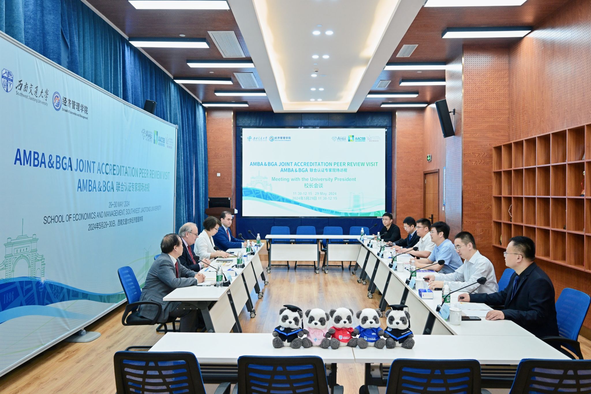 2024年5月29日至30日,AMBA&BGA联合认证专家组对西南交通大学经济管理学院进行了为期两天的现场访视。此次访视由金斯顿大学副校长Martyn Jones教授担任专家组主席,阿里木图管理大学校长Gulnara Kurenkeyeva教授、国际认证咨询委员会成员、浙江大学全球创业研究中心主任王重鸣教授、AMBA&BGA认证总监George Iliev先生担任专家组成员。