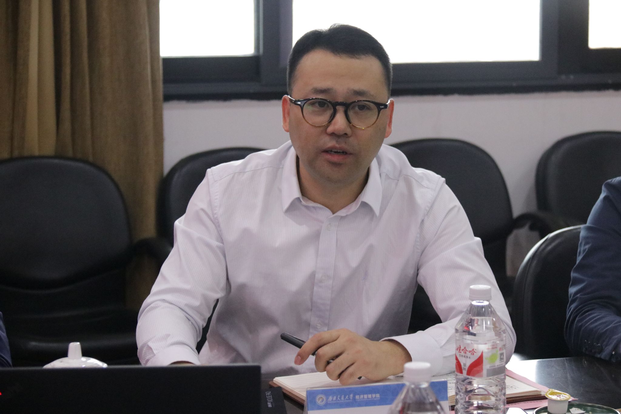 首先,经济管理学院党委书记郭强从学历教育、组织结构、师生情况、学科研究等方面详细介绍了学院概况和科研人才现状。他强调,学院重视学生创新实践能力的培养,双方合作潜力巨大,希望能与创新创业学院深入合作交流。
