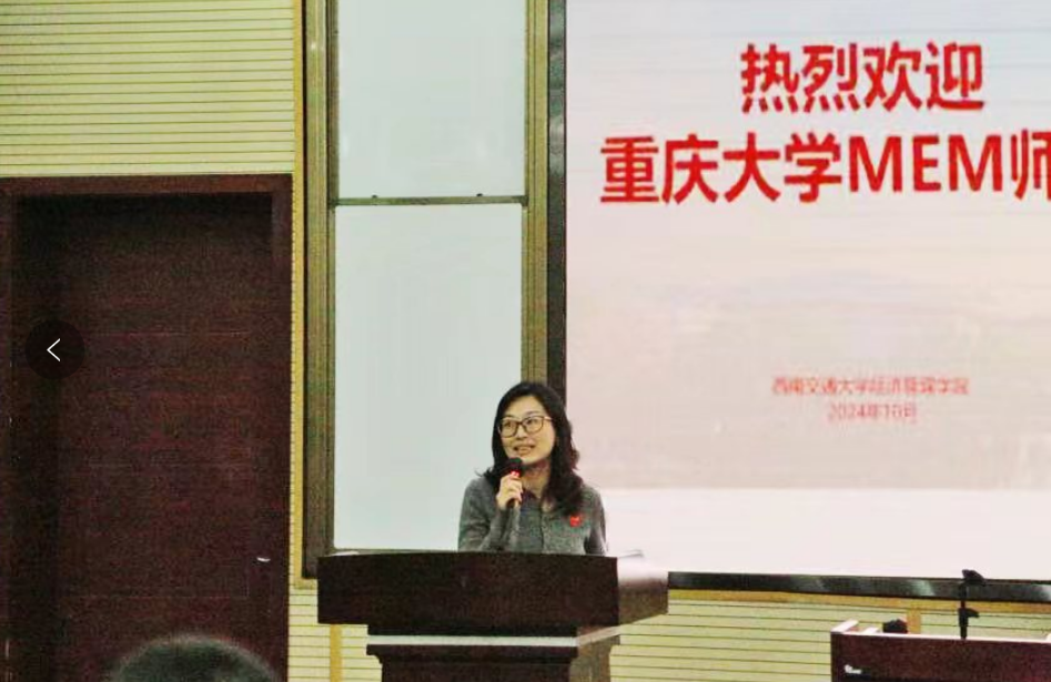 西南交通大学经济管理学院专业学位教育中心副主任李洪辉发表了开场致辞,对重庆大学的师生表示热烈欢迎。她强调,此次交流活动意义重大,期望两校能开展多维度、深层次的交流。这不仅是知识的交流,更是思想与情感的碰撞与融合。通过这样的互动,两校能相互学习、共同进步,携手探索MEM教育与学术新路径,为人才培养和学科发展贡献力量。