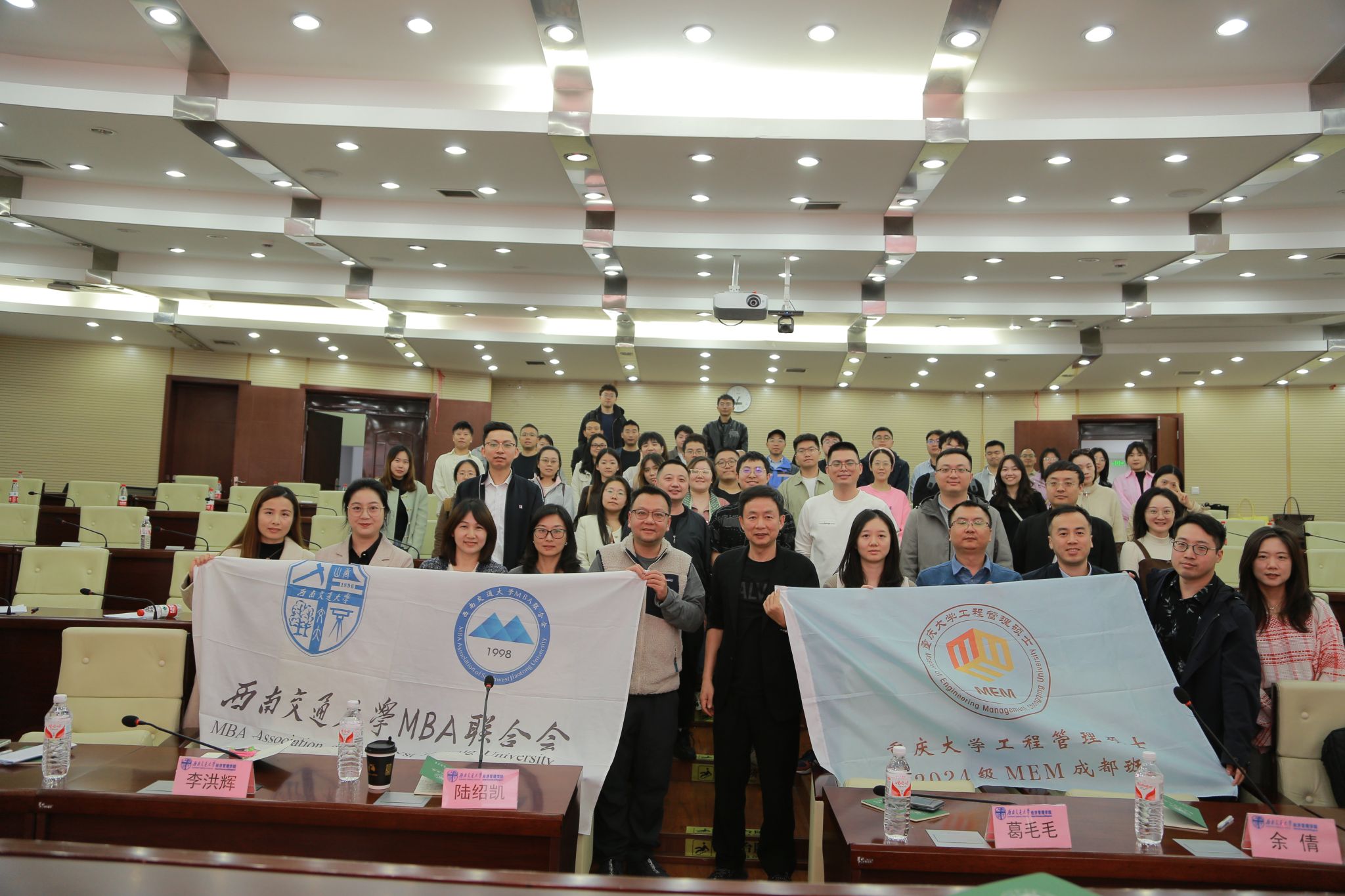 2024年10月26日下午,西南交通大学MBA联合会携手重庆大学MEM联合会,成功举办了以“智汇同行:学术探索与行业洞见”为主题的沙龙分享盛会。本次沙龙活动主要以工程管理相关知识、论文写作要点解析为桥梁,连接两校情谊,促使共同成长。出席本次沙龙分享会的有重庆大学建筑城规学院党委副书记、MEM授课老师葛毛毛和管理科学与房地产学院2023级MEM班主任余倩,西南交通大学经济管理学院工程管理系教授陆绍凯,专业学位教育中心副主任李洪辉,2024级MEM班主任宋洁。沙龙由西南交通大学经管学院2023级MBA张文薰主持。