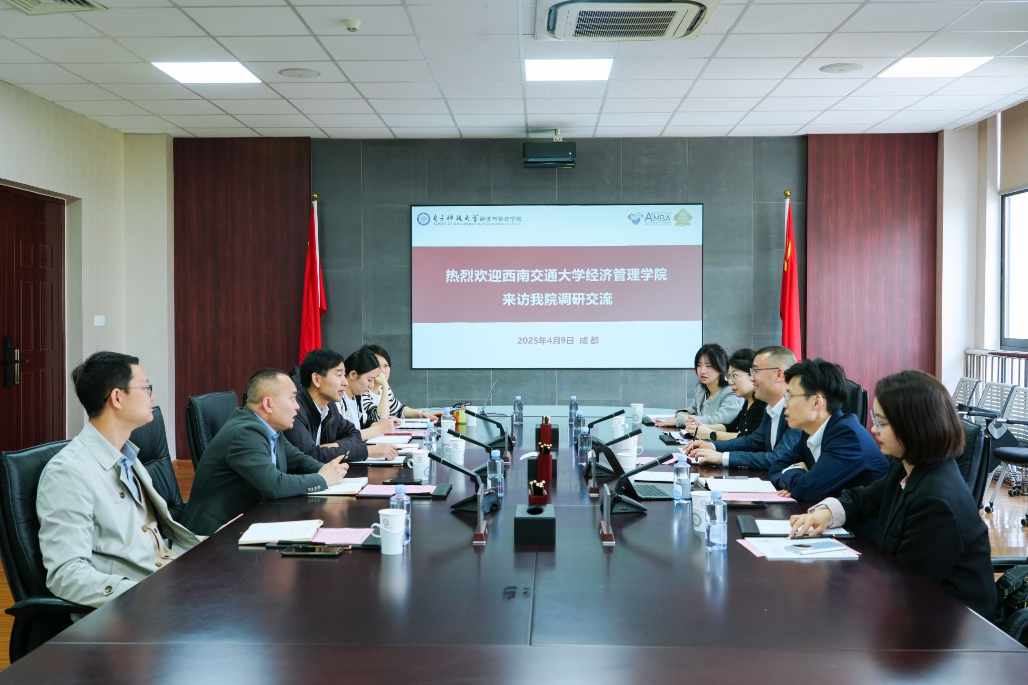 为进一步优化本科生及研究生培养工作,搭建人才梯队及科研平台,促进学院学科建设,4月9日上午,由西南交通大学经济管理学院聂佳佳副院长、马锋副院长带队,科研秘书李堃堃、学科秘书杨文敏、本科教务员漆敏一行前往电子科技大学经济与管理学院进行调研。