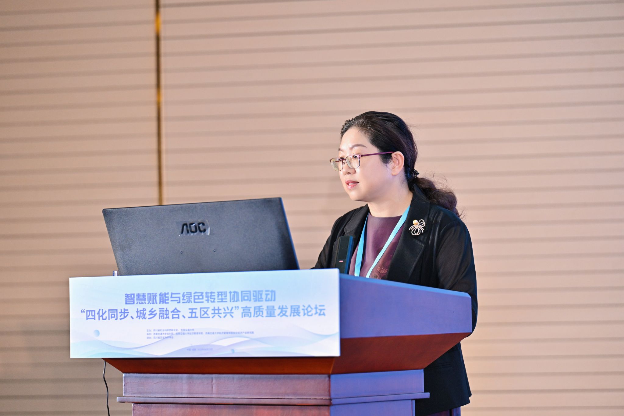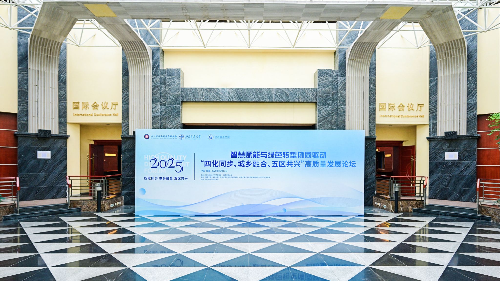2025年6月13日,由四川省社会科学界联合会与西南交通大学共同主办,西南交通大学文科处、西南交通大学经济管理学院承办的“四化同步、城乡融合、五区共兴”高质量发展论坛在西南交通大学九里校区国际会议厅举行。本次论坛以“智慧赋能与绿色转型协同驱动”为主题。来自国家发改委能源研究所、省委政研室、省委党校、省经信厅、省农业农村厅、省社科院等部门和省内外科研院所、高校、各市(州)社科联和相关行业学会的领导、嘉宾、代表近百人参加。论坛由西南交通大学党委副书记高平平主持。