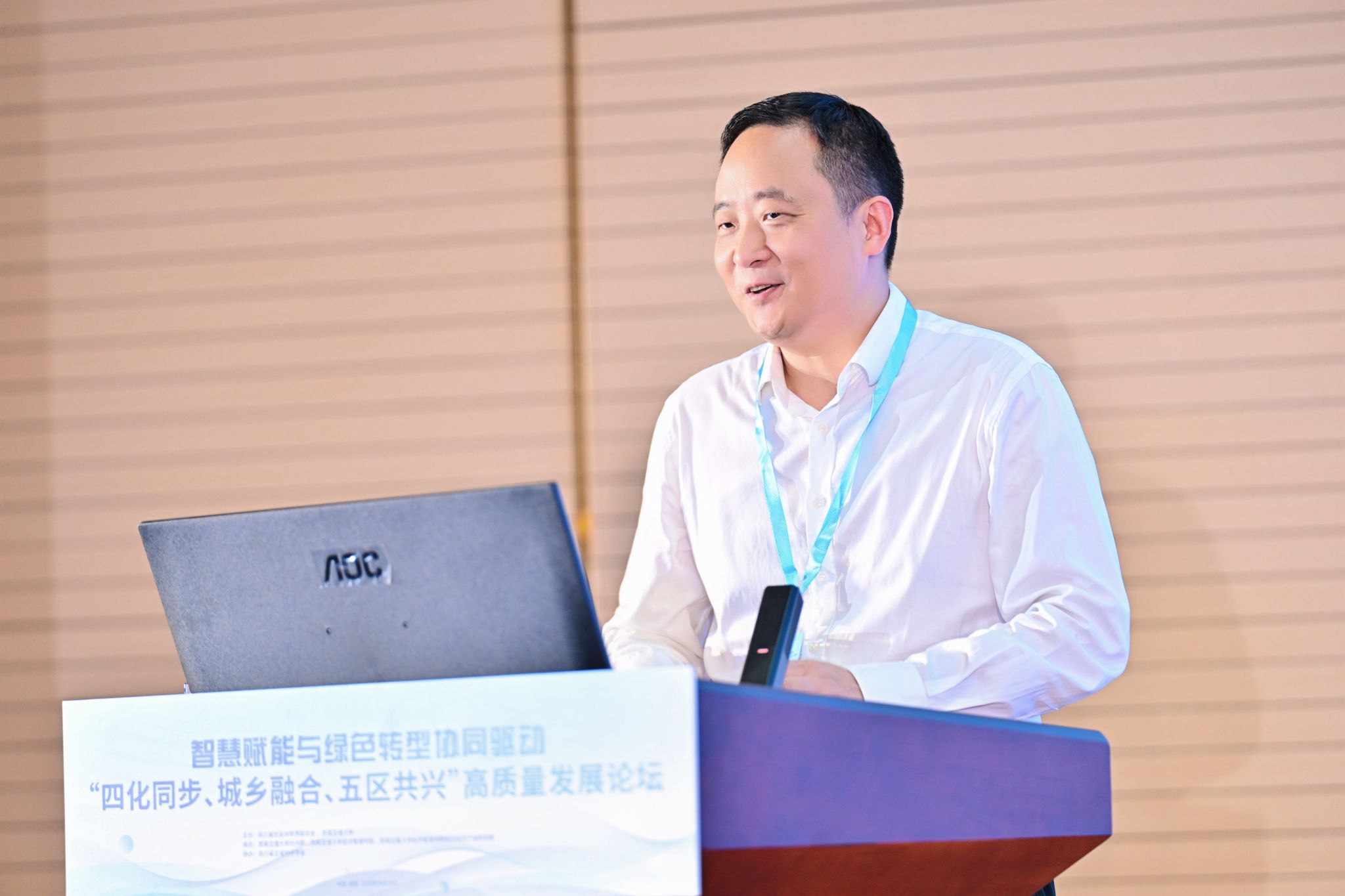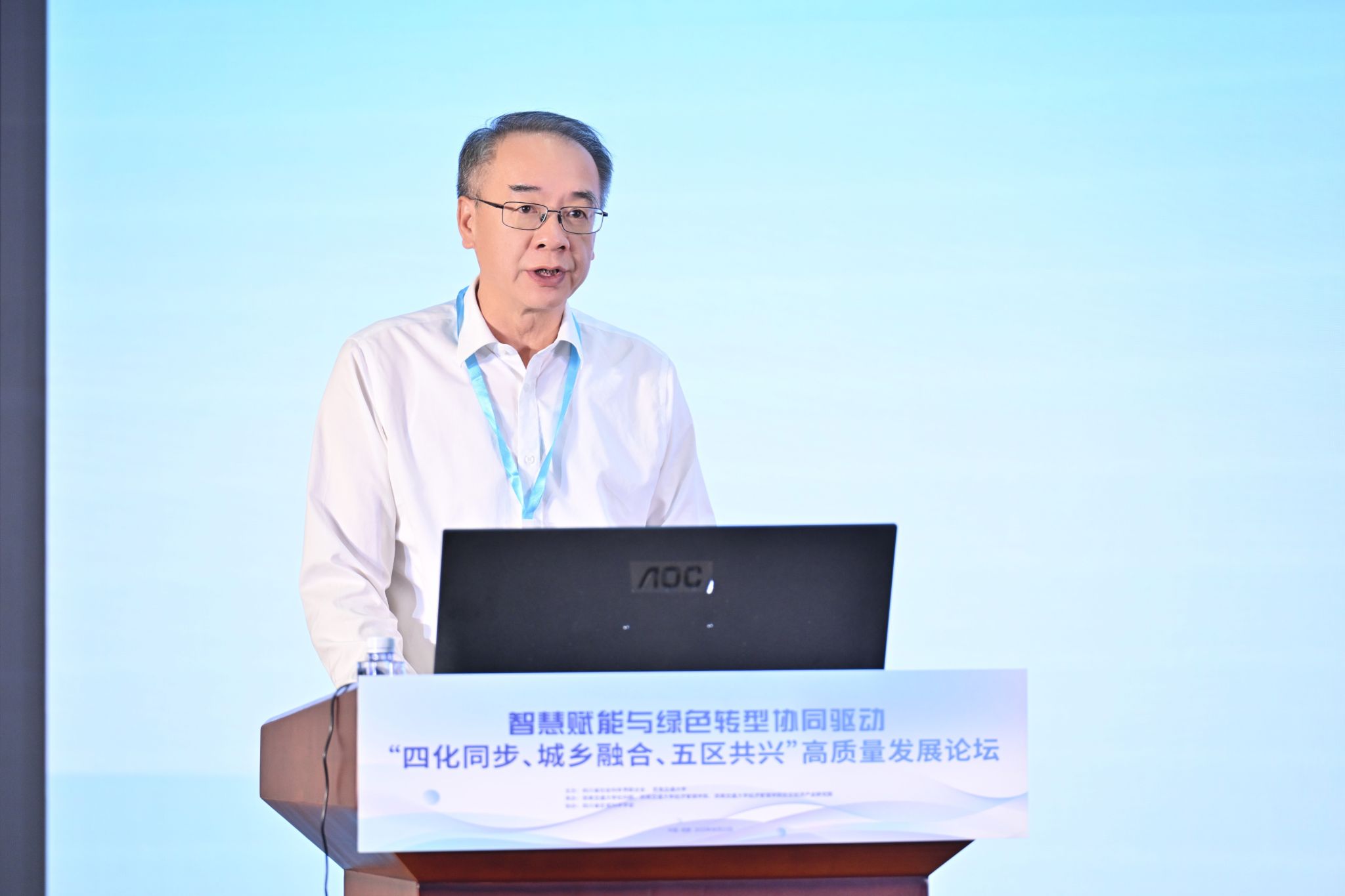 四川省社科联党组书记屈晓华在致辞中指出,省社科联以贯彻党的二十大精神及省委战略部署为首要任务,围绕中心工作搭建学术交流平台,通过前三届高质量发展论坛的成功举办,论坛已成为凝聚现代化建设智慧的重要品牌。屈晓华认为,面对资源环境约束、区域发展不平衡等问题,四川亟需战略性解决方案。“智慧赋能”和“绿色转型”的深度协同,则是抢占未来竞争制高点的战略选择。全省社科界应充分发挥思想库.智囊团作用,紧扣省委发展战略,深入一线开展调研,着力在“聚焦实践痛点深化靶向研究、强化跨界协同构建融通支撑、加速成果落地服务现实需求、固化协同网络深化平台效应”四个方面下功夫,为纵深推进“四化同步、城乡融合、五区协同”发展战略贡献社科智慧和力量。