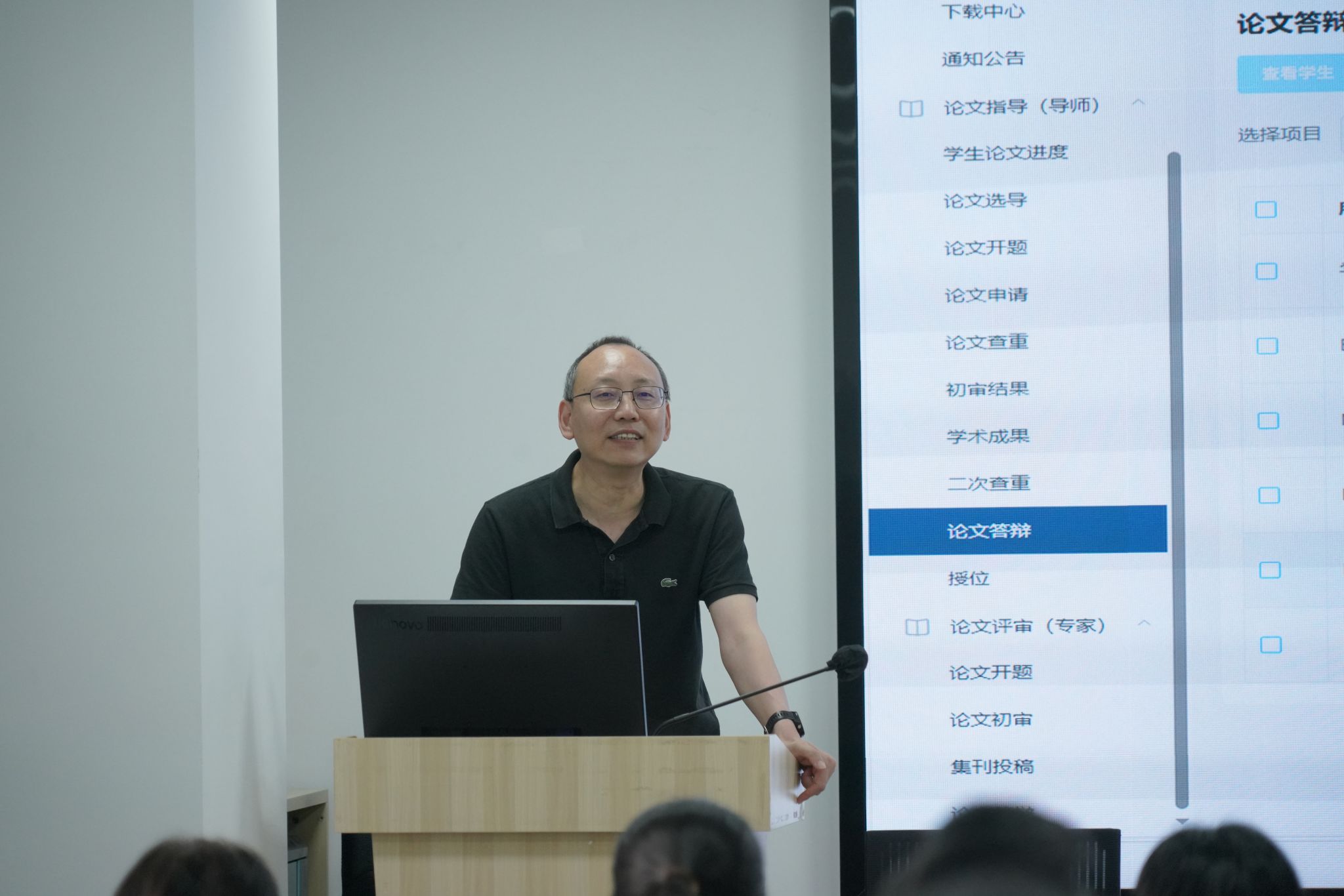 专业学位教育中心副主任诸波就导师指导过程中的具体要求展开详细培训,内容涵盖培养方案、论文指导、导师权责三个方面。导师们针对指导过程中可能遇到的问题和疑难点相互交流研讨。
