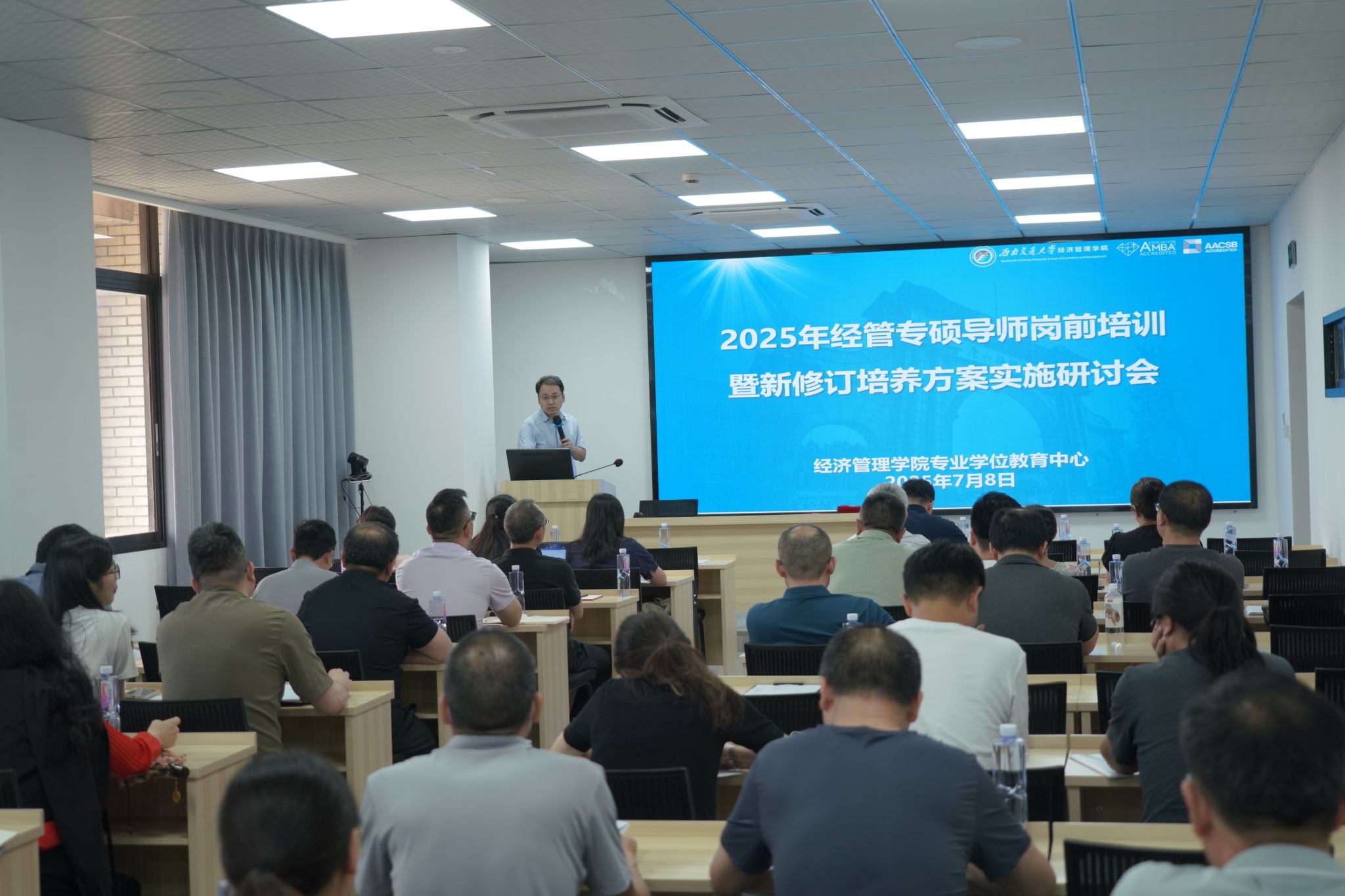 为进一步加强学院专硕导师队伍建设水平,提升专业学位教育人才培养质量,2025年7月8日下午,经济管理学院于0819教室召开2025年经管专硕导师岗前培训暨新修订培养方案实施研讨会。学院院长韩科,副院长李良出席研讨会,2025年新增上岗导师与学院资深导师参会研讨,会议由专业学位教育中心副主任诸波主持。