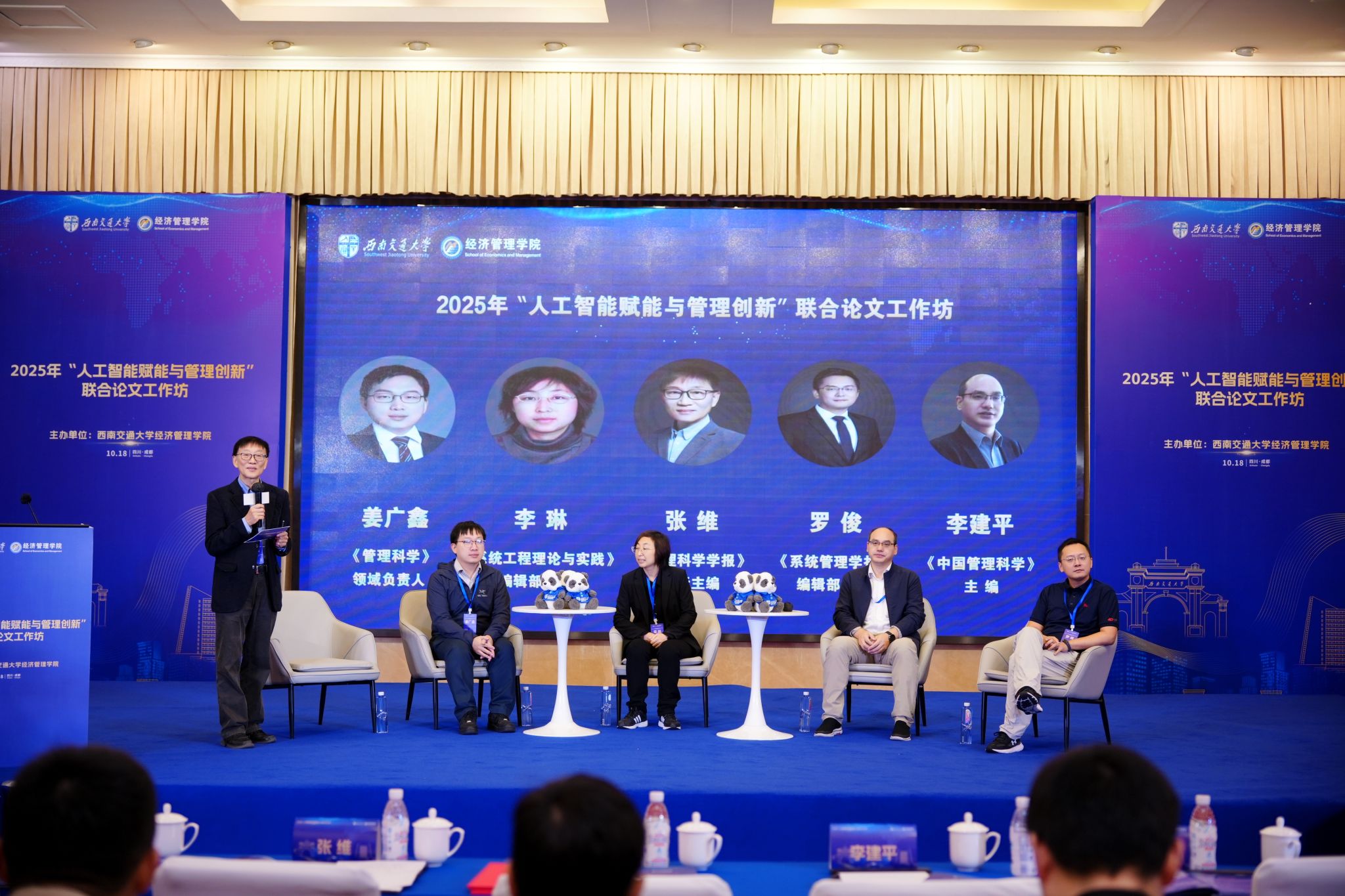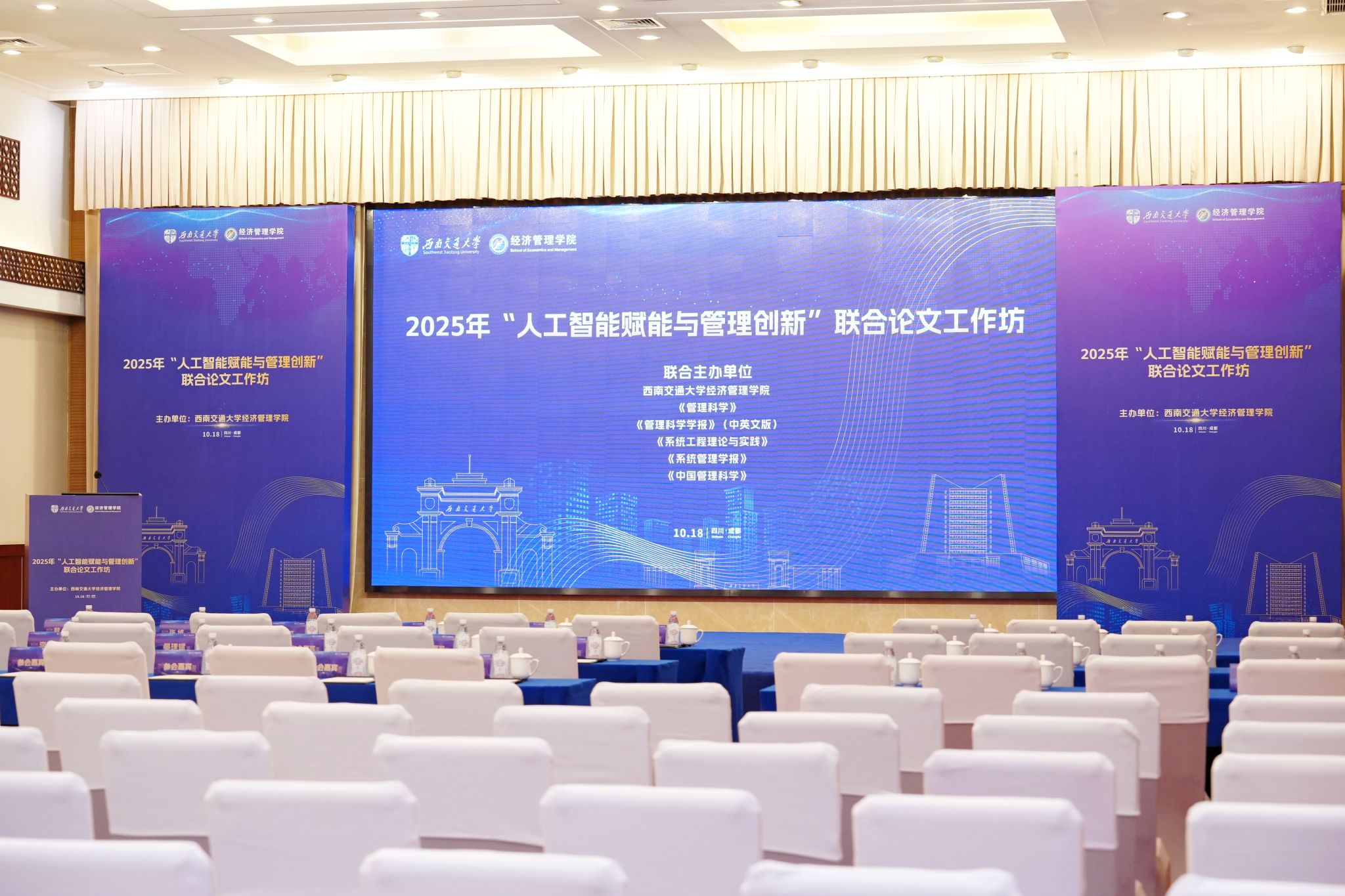 2025年10月18日,由西南交通大学经济管理学院联合《管理科学》《管理科学学报》《系统工程理论与实践》《系统管理学报》《中国管理科学》五家国内权威管理学期刊共同主办的“人工智能赋能与管理创新”联合论文工作坊,在成都金牛宾馆圆满落幕。本次工作坊以“顺应管理科学前沿趋势、服务国家战略需求”为核心导向,聚焦学科交叉创新痛点,精准对接青年学者成长需求,为提升学术研究质量与论文写作水平搭建了高水平交流平台。来自全国50余所高校及科研院所的180余位专家学者与青年学子齐聚一堂,围绕“人工智能赋能与管理创新”这一前沿议题展开深入交流与研讨。