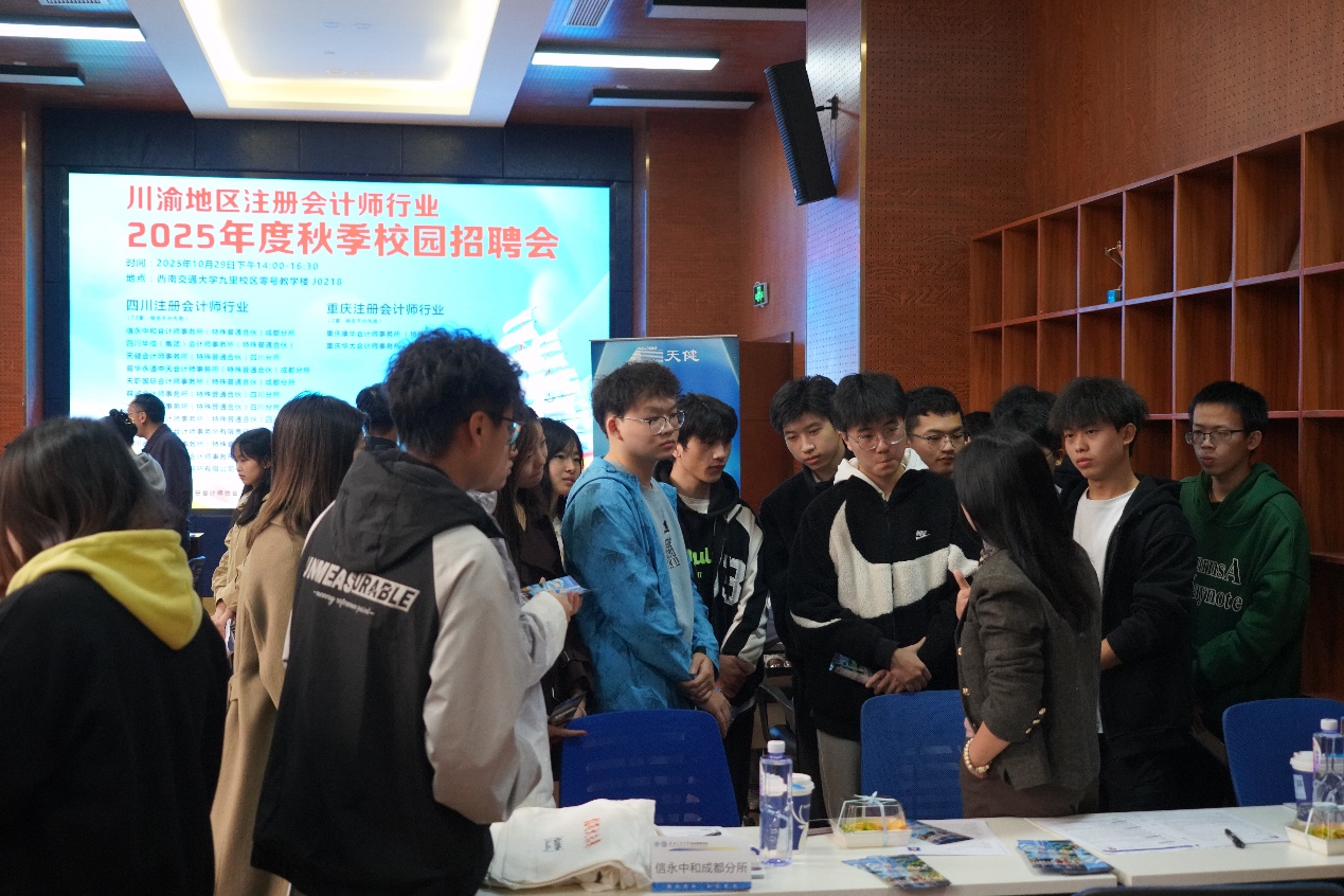 为了深入贯彻落实高校毕业生高质量就业目标,助力成渝地区双城经济圈建设,10月29日14:00,四川省注册会计师协会、重庆市注册会计师协会联合西南交通大学经济管理学院举办了川渝地区注册会计师行业2025年度西南交通大学专场招聘会。