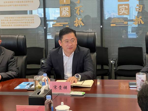 川发证券基金党支部书记、董事长宋贵祥对经济管理学院一行的到来表示热烈欢迎和衷心感谢。随后,他从发展历程、行业领域、投资成效、业务布局、运营优势以及纾困发展基金管理等方面对公司进行了详细介绍,重点阐述公司以生物医药、航空航天、先进材料、生态环保为依托“4+2+2”业务布局以及“789”人才梯队,进一步说明公司在科技、政策前沿领域产业发展研究、行业培训等内容的发展需求。