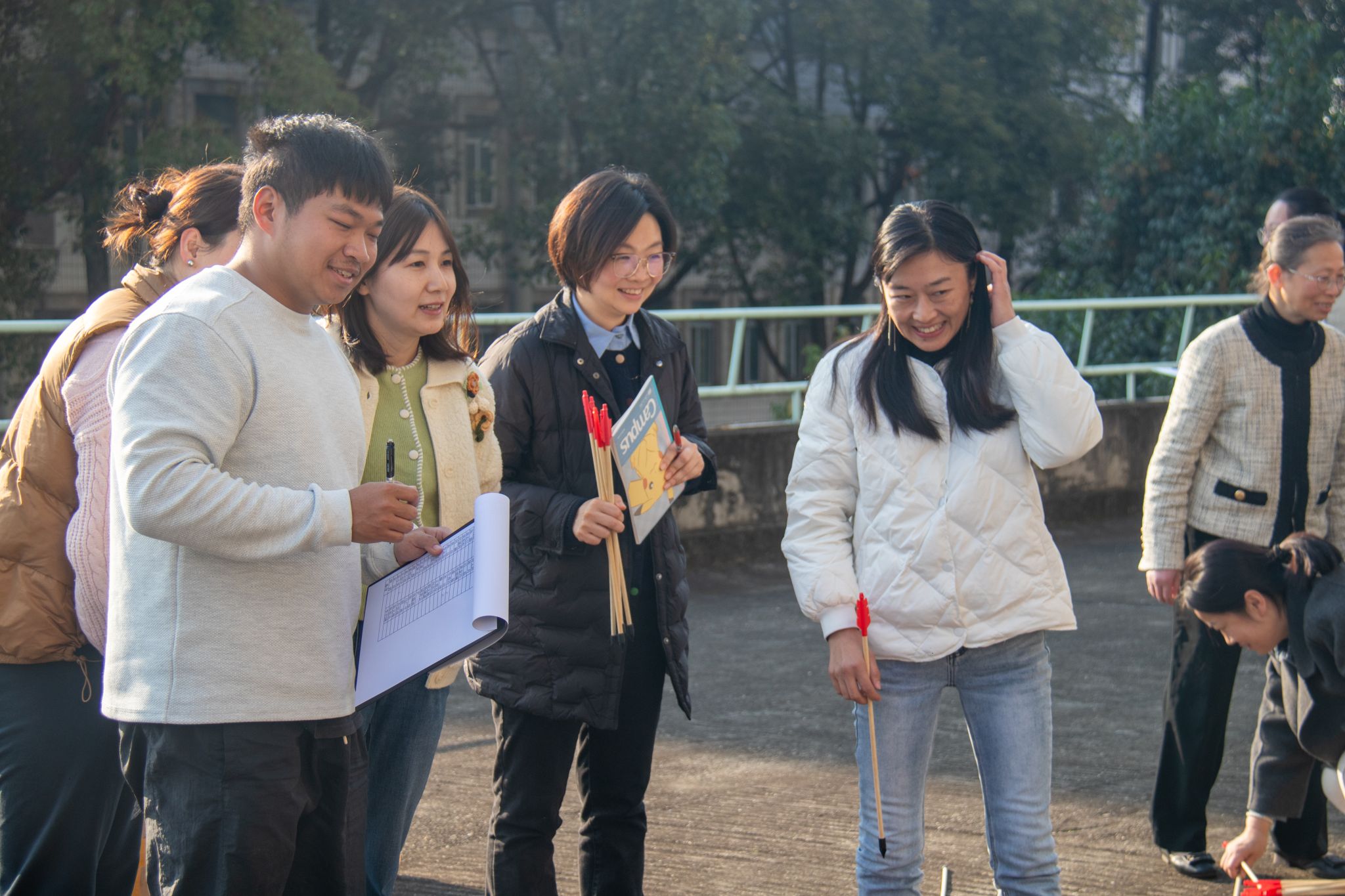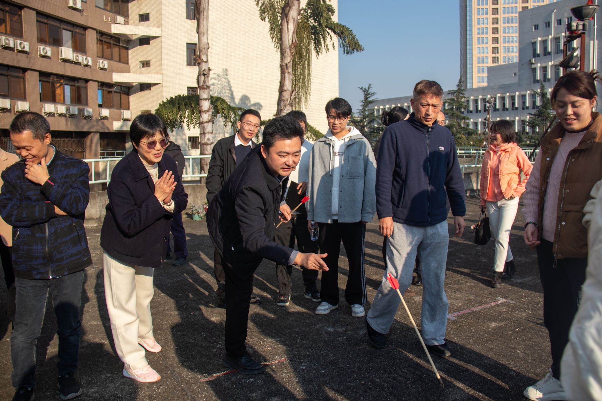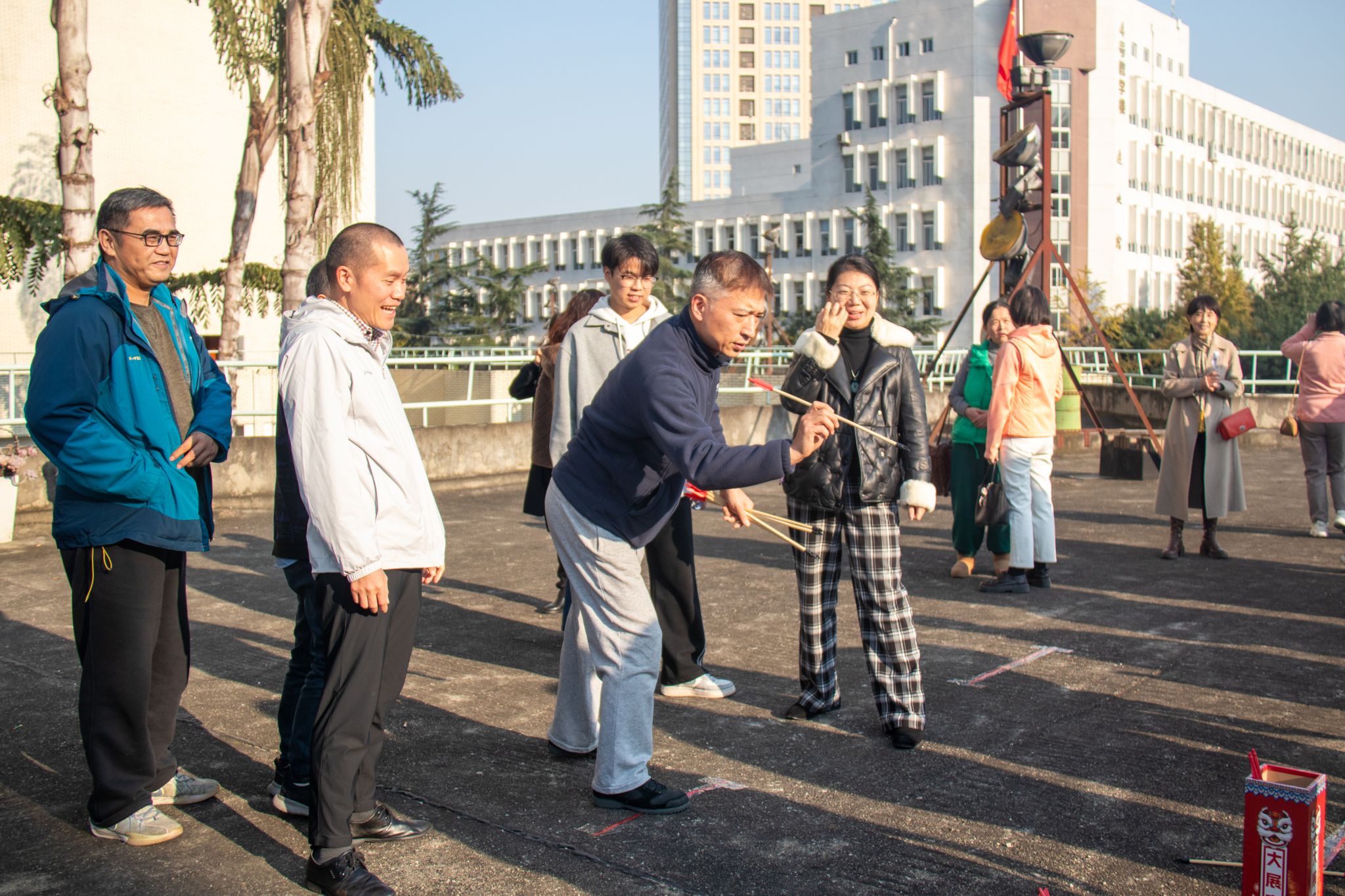 为丰富教职工业余文化生活,增强集体凝聚力和向心力,营造健康快乐、和谐幸福的校园氛围,经济管理学院工会于2025年11月20日下午开展教职工趣味投壶活动。老师们暂时卸下工作的忙碌,全身心投入这场兼具趣味性与传统文化的比拼。