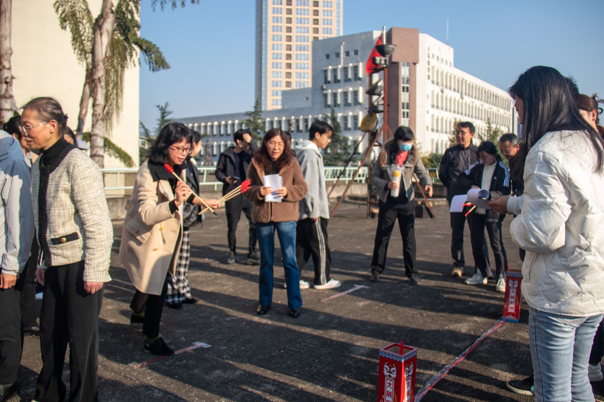 本次活动以学系为单位比拼,老师们纷纷上手尝试,瞄准、投壶、落壶的动作连贯又不失趣味。有的老师精准投掷,引来阵阵喝彩;有的老师虽初尝失利,却迅速调整状态,越投越稳,现场加油声、欢呼声此起彼伏。大家在轻松愉悦的氛围中切磋技巧、增进情谊。