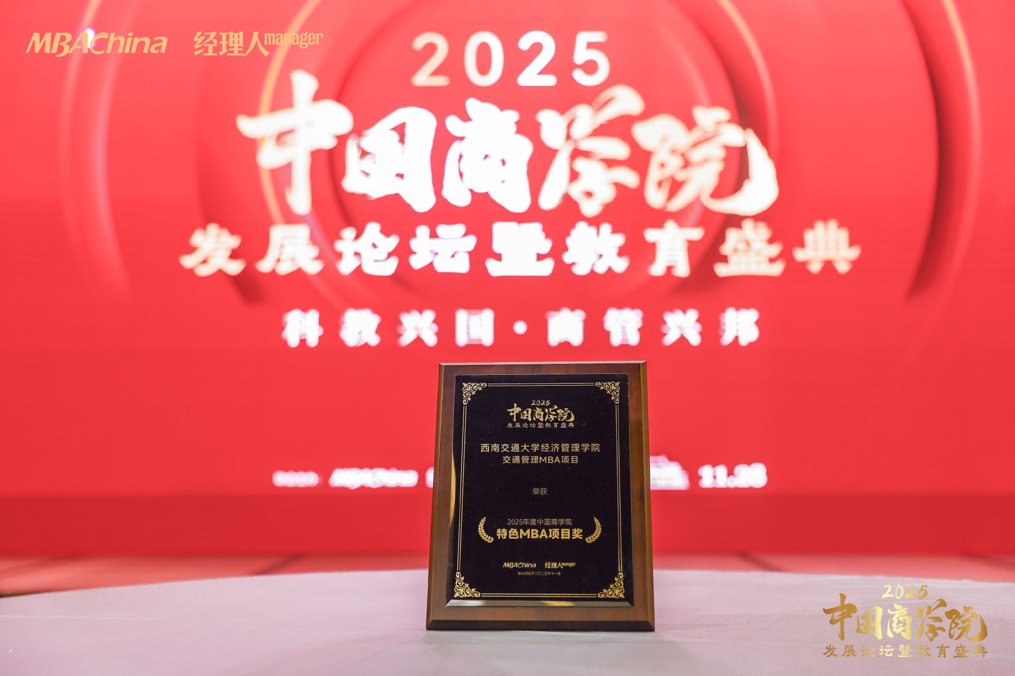 作为深耕轨道交通行业前沿领域管理教育的标杆院校,西南交通大学MBA项目始终坚持“立足交通,不囿于交通”的发展理念,深度融合轨道交通、智慧交通、综合交通行业特色,着力培养具有国际视野、创新意识、以逻辑和数理分析能力见长的高素质复合型工商管理人才。此次,学院交通管理MBA项目荣获“2025年度中国商学院特色MBA项目”奖,正是对这一差异化培养路径的充分认可,标志着学院在特色商学教育领域的探索与实践走在了全国前列。