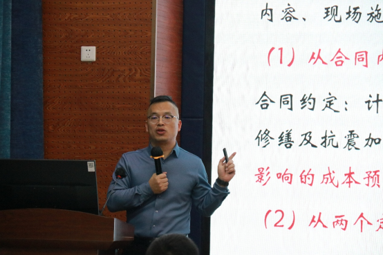 在具体案例分析环节,刘江从两个维度进行了详细阐述:从合同层面,强调合同约定的重要性,涉及计价方式、修缮责任及抗震加固等特殊条款的成本预判。从实操角度,通过真实案例展示纠纷处理中的关键环节。