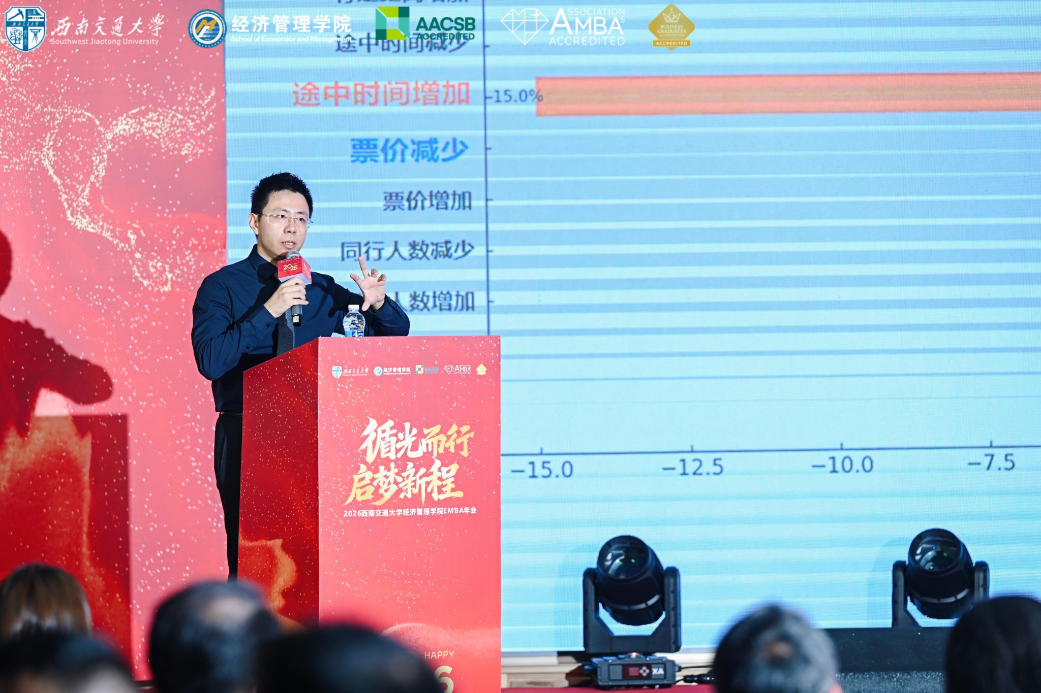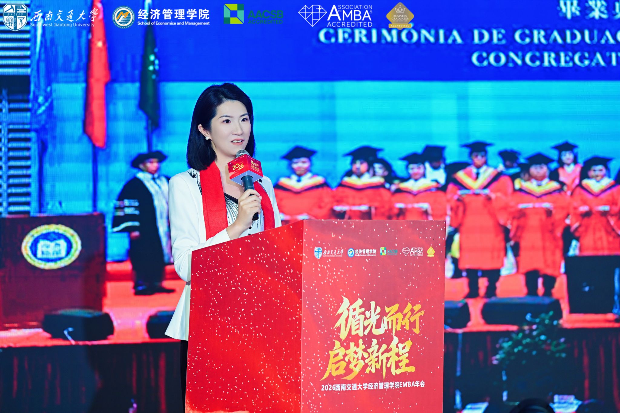 12月28日,2026西南交通大学经济管理学院“循光而行•启梦新程”EMBA年会在成都隆重举行。学校党委副书记高平平、学校职能部处相关领导、经济管理学院党政领导班子、师生代表、兄弟院校嘉宾及各界校友齐聚一堂,共叙同窗情谊,共话发展新篇,在欢声笑语中凝聚奋进力量,共启未来新程。