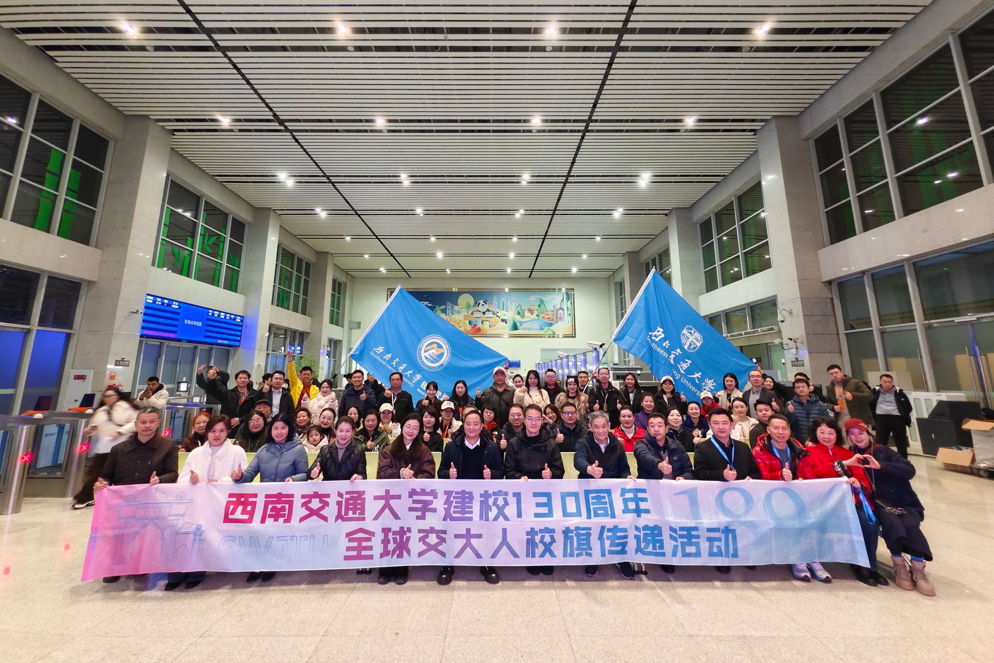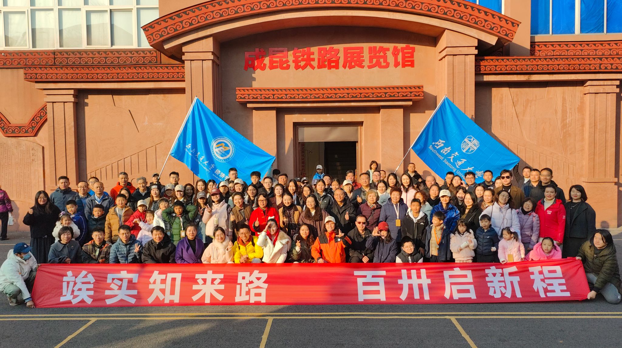 1月3日,“安逸号”熊猫专列从西昌西站缓缓启程返回成都,由西南交通大学校友工作办公室主办、经济管理学院承办的“竢实知来路,百卅启新程”重走成昆铁路跨年活动圆满落幕。来自西南交通大学经济管理学院MBA(EMBA)及电气工程学院、土木工程学院等院系专业的130名校友及家属,以“重走成昆线”的方式,在母校130周年华诞来临之际,完成了一次深沉而昂扬的精神寻根。学校党委副书记高平平,校友办公室主任阮波,经济管理学院党委书记蒋佳出席出征仪式。