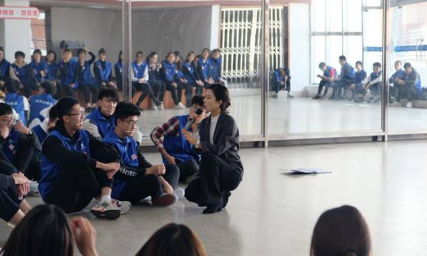 在志愿者休息期间,老师给志愿者们讲解了一些关于自我介绍的技巧以及面试选拔所应具备的基本礼仪。