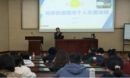 其次,易洺瑶老师用生动有趣的例子,深入浅出,从如何制定清晰的目标,如何对行业有更准确的认识,如何对自己有精准的定位,如何匹配职业,以及如何合理地利用资源这几个方面进行介绍,让同学们对自己的生涯有了更清晰的认识。最后易老师给同学们分享了一段话作为讲座的结尾:“学习的过程或许痛苦,但是选择主动接受学习中的苦,生活中的苦即便还在,意义也会变得不同,不要在应该奋斗的年纪选择安逸,要试着跳出舒适区,主动吃苦,坚持学习。”