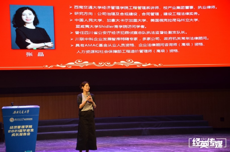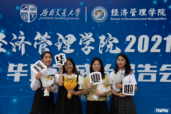 6月11日下午3:00,经济管理学院2021届毕业生成长报告会在九里校区大学生会堂隆重举行。莅临现场的有经济管理学院执行院长郭强,党委副书记杨宏毅,副院长聂佳佳,学院各系、中心、办公室的老师代表,以及学院全体2021届毕业生同学。