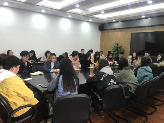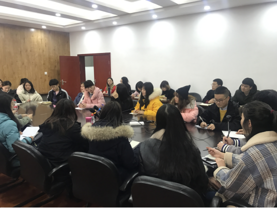 贾佳就上学期与同学们的谈话情况做了简短总结,她指出当前我院学生缺乏学习兴趣,过度依赖手机和电脑等电子信息产品,并将在新学期采取改变谈话形式的方法促进同学之间的相互学习与相互探讨。