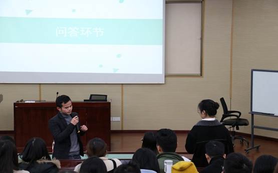 然后是答疑环节。一共有4位来自不同专业的同学就如何有效阅读文献以及如何进行实习准备等对师兄师姐进行了提问,这些问题同时也代表了大多数同学的疑惑。龚乐学长和熊璐洁学姐也尽自己所能进行了耐心细致的解答,现场积极互动,达到了此次分享交流活动的效果。相信在场同学也对自己的学业探索和职业发展有了更清晰的规划,也会更加努力地创造未来。
