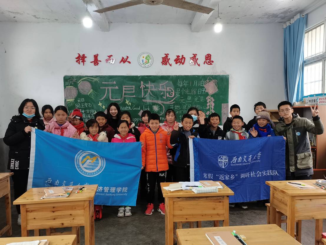 为积极响应国家乡村振兴战略号召,深入了解农村脱贫现状,助力农村特色产业和教育事业发展,西南交通大学经济管理学院“乡村振兴新实践——善感实践新成果”寒假“返家乡”调研社会实践队于2022年1月10日至11日前往重庆市彭水苗族土家族自治县善感乡开展了社会实践调研活动。
