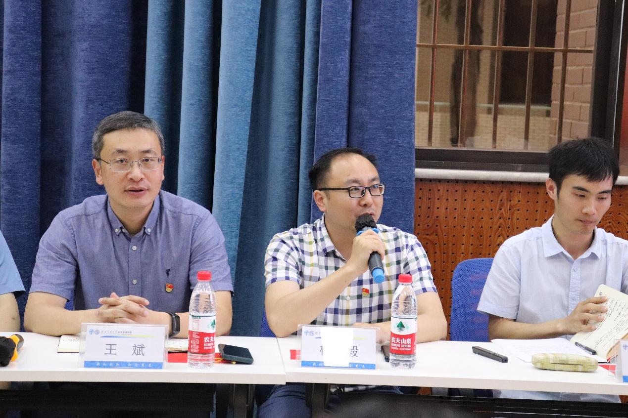 参加活动的院领导分别对毕业生党员同学们作了发言。李良在发言中指出,同学们离开母校意味着将开启人生的新阶段,未来仍有很多美好需要去奋斗,希望大家珍惜身体,实现自己的目标,万事如意。杨宏毅贴心叮嘱同学们要注意完成组织关系转接的相关事项,希望大家能在今后的日子里好好奋斗,骄傲自信地向学院汇报自己的成就和荣誉。郭强表达了对同学们即将分别的不舍之情,并对同学们提出了三点殷切希望:第一,希望同学们不忘初心,牢记使命,永远跟党走,在各自的岗位上奉献自己的力量;第二,希望同学们不忘“竢实扬华,自强不息”的交大精神,牢记“格物致知,和合共进”的院训,在新的岗位上做到知行合一,理论联系实际;第三,希望同学们感恩祖国,情牵母校,今天同学们以学校为荣,明天学校以同学们为傲,希望同学们常回母校看看,祝愿大家前途似锦,鹏程万里,归来仍是少年。王斌在发言中表示自己参加今天的活动非常的激动与感动,同学们优秀的表现让他觉得学院的工作具有很高的价值,也激发老师们更好地做好立德树人工作,在分别之际,他送给了大家三句话:第一,祝贺大家毕业,毕业是人生承前启后的里程碑,毕业之际,要回首过去,展望未来,审视自己,感恩父母、感恩母校、感恩学院;第二,希望各位党员同志在将来的人生中,在日常的工作和生活中,始终牢记党员身份,树立鲜红的党员旗帜,将交大精神和学院院训烙印在脑海里,做知行合一的践行者;第三,大家来到交大、来到经管学院,一起经历了很多,不论何时,不论在哪里,学校学院永远与大家同在,也会在第一时间为校友们排忧解难,相信同学们的人生会越来越精彩,坚信同学们会成为一颗颗让老师们感到自豪骄傲的璀璨之星。