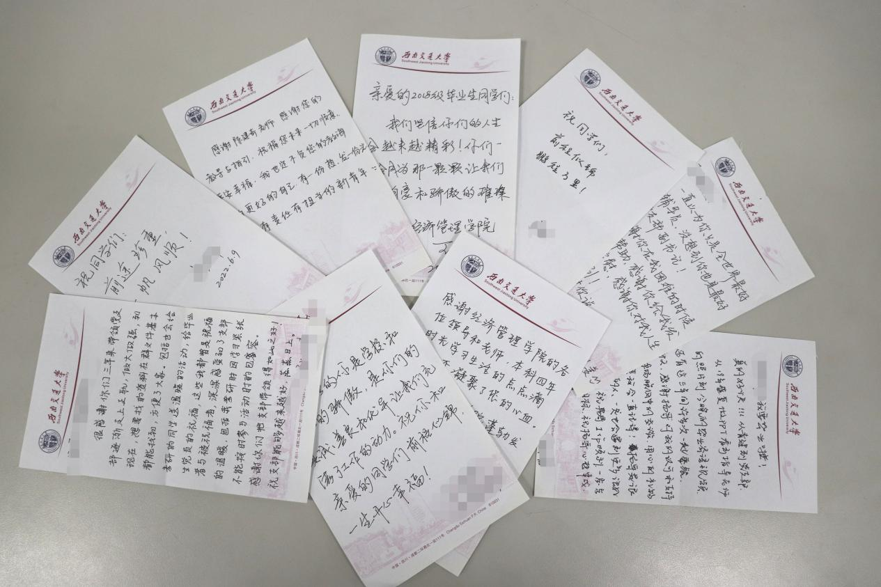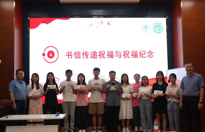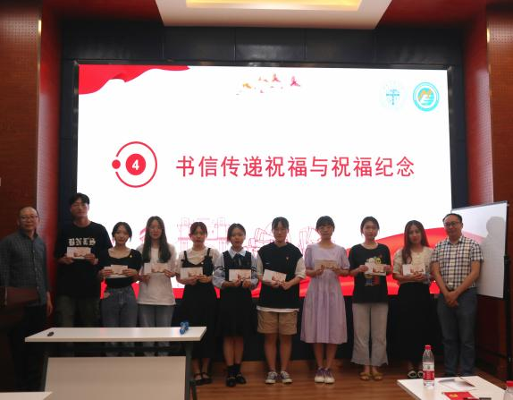 在书信传递祝福与祝福纪念环节,大家共同观看了祝福视频,视频表达了党支部老师以及同学们对全体毕业生党员的美好祝福,大家一同回顾在党支部的成长和经历的点点滴滴。伴随着轻音乐,毕业生党员们闭上眼睛,开始回忆自己的入党之路以及在党支部留下的难忘时刻,大家在明信片上写下内心最想表达的真挚情感以及对彼此的祝福。这个环节之后,王斌、郭强、杨宏毅、李良向毕业生党员同学们颁发了毕业纪念贺卡和祝福信,表达了真切的祝福。