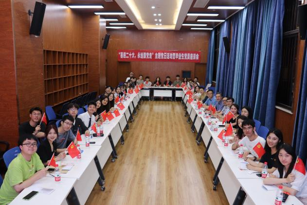 2022年6月9日晚,经济管理学院“喜迎二十大,永远跟党走”主题党日活动暨2022届本科毕业生党员座谈会在J0218教室举行,学院党委书记王斌、执行院长郭强、党委副书记杨宏毅、副院长李良,以及本科管理类党支部书记苏扬、副支书张媛媛和本科经贸类党支部书记陈建奇、副支书薄慧和党员毕业生同学们进行了座谈交流。